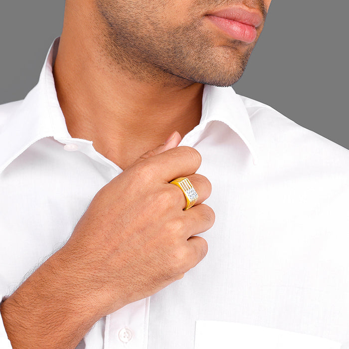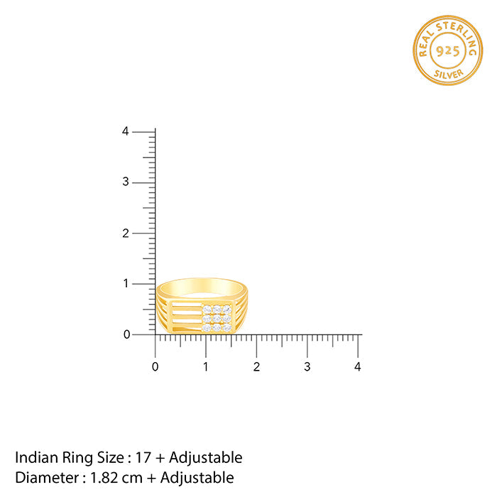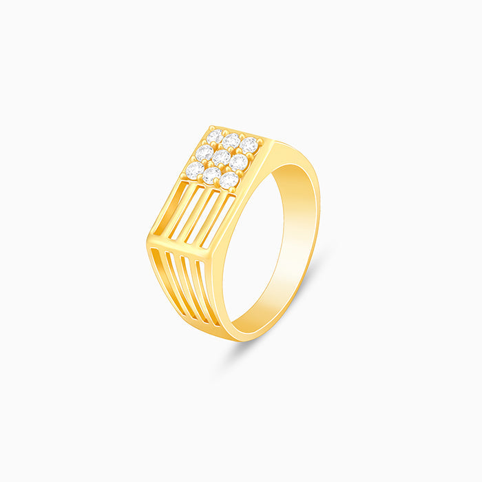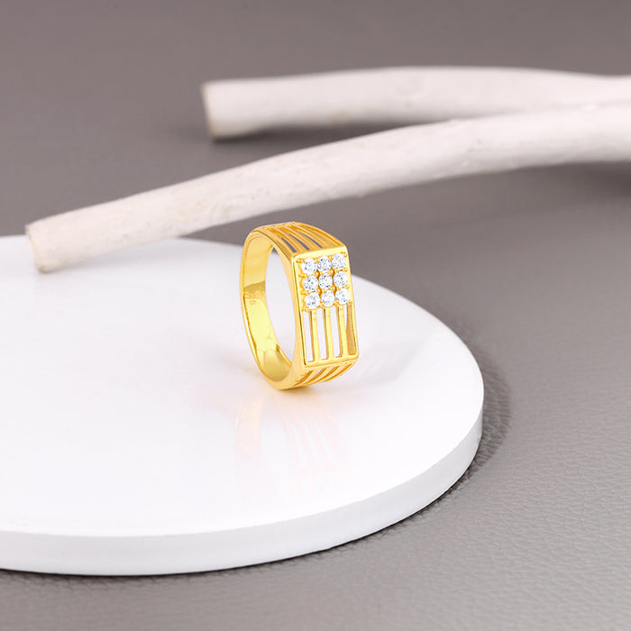 This gold plated ring for men features a rectangular design on the front, with a zircon stud elegantly placed at one corner within a square line.
