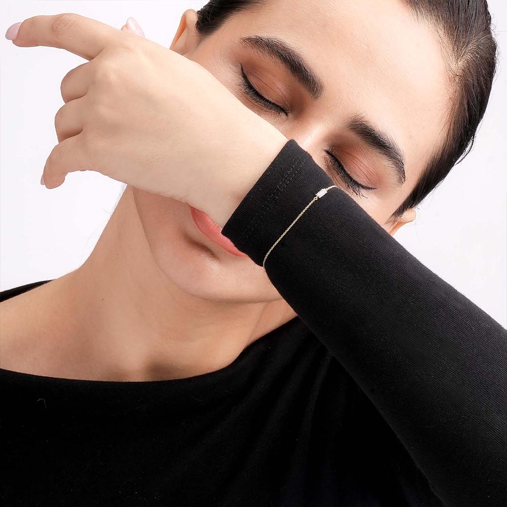 A chic, modern bracelet featuring a bar-shaped design embellished with shimmering lab-grown diamonds for a striking strobe effect. Perfect for creating a sleek, contemporary statement, this piece adds a touch of refined sparkle to any jewelry collection.