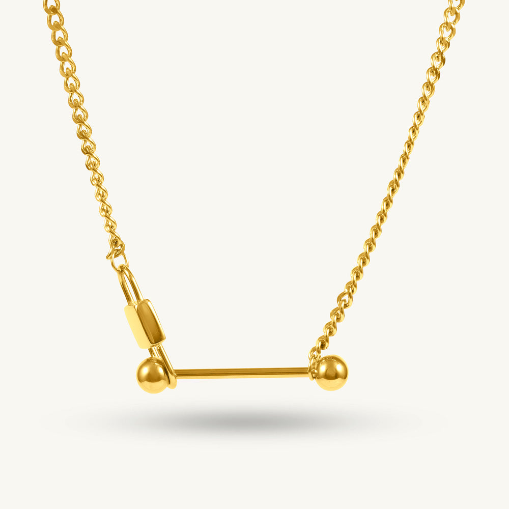 The Golden T-Bar Charm Necklace brings a sleek, minimalist design with its signature bar charm resting on a golden chain. A modern twist on a classic piece, it symbolizes balance and strength, making it perfect for both casual and formal looks. A must-have for jewellery lovers who adore versatile accessories.