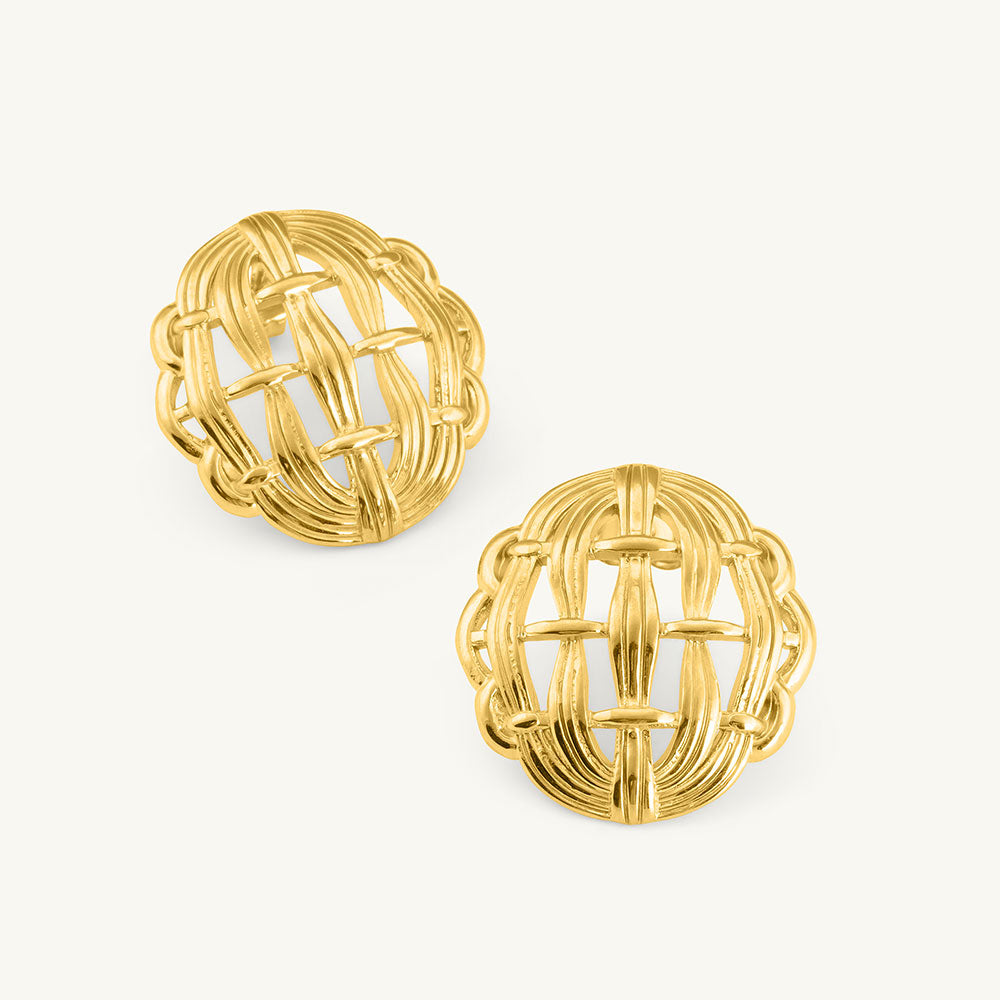 Bring contemporary elegance to your jewellery collection with these Golden Web stud earrings. Crafted from durable stainless steel with radiant 18k gold plating, their intricate web-inspired design adds a stylish, modern accent to any outfit. Perfect for everyday wear, office settings, or evening occasions, these studs are a versatile accessory that balances sophistication with artistry.