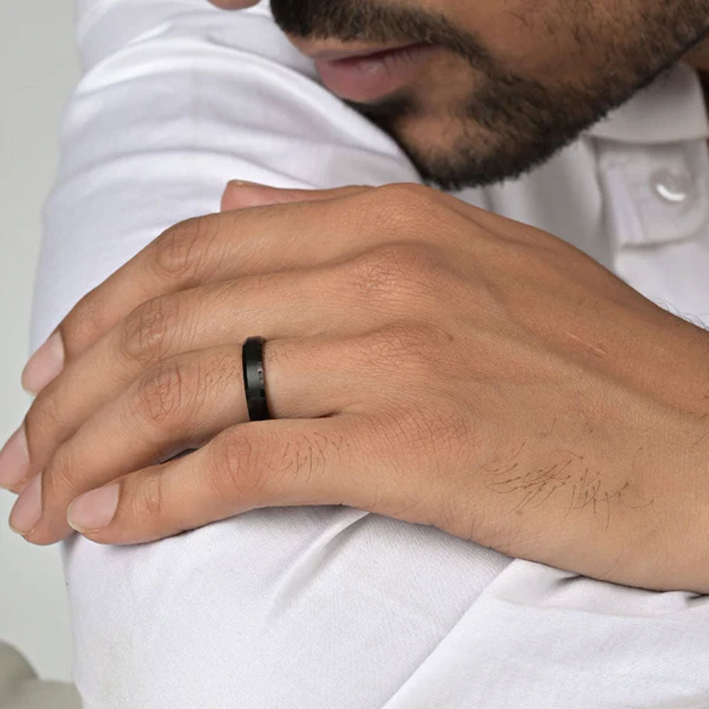 Embrace the trend of ring stacking by pairing the Gradient Band Men's Ring with other rings of different styles and materials. Experiment with contrasting textures and colors to create a unique and personalized look. Pair it with matte-finished or textured rings to create a visual contrast that adds depth and interest to your overall style.
