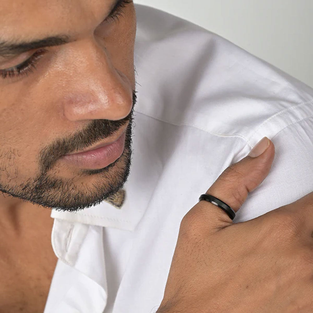 Wear the Gradient Band Men's Ring as a standalone accessory for a sleek and minimalistic look. Pair it with a crisp white shirt, tailored trousers, and dress shoes for a sophisticated and polished appearance. The ring's gradient design adds a touch of modernity and serves as a conversation starter, showcasing your fashion-forward choices with confidence.