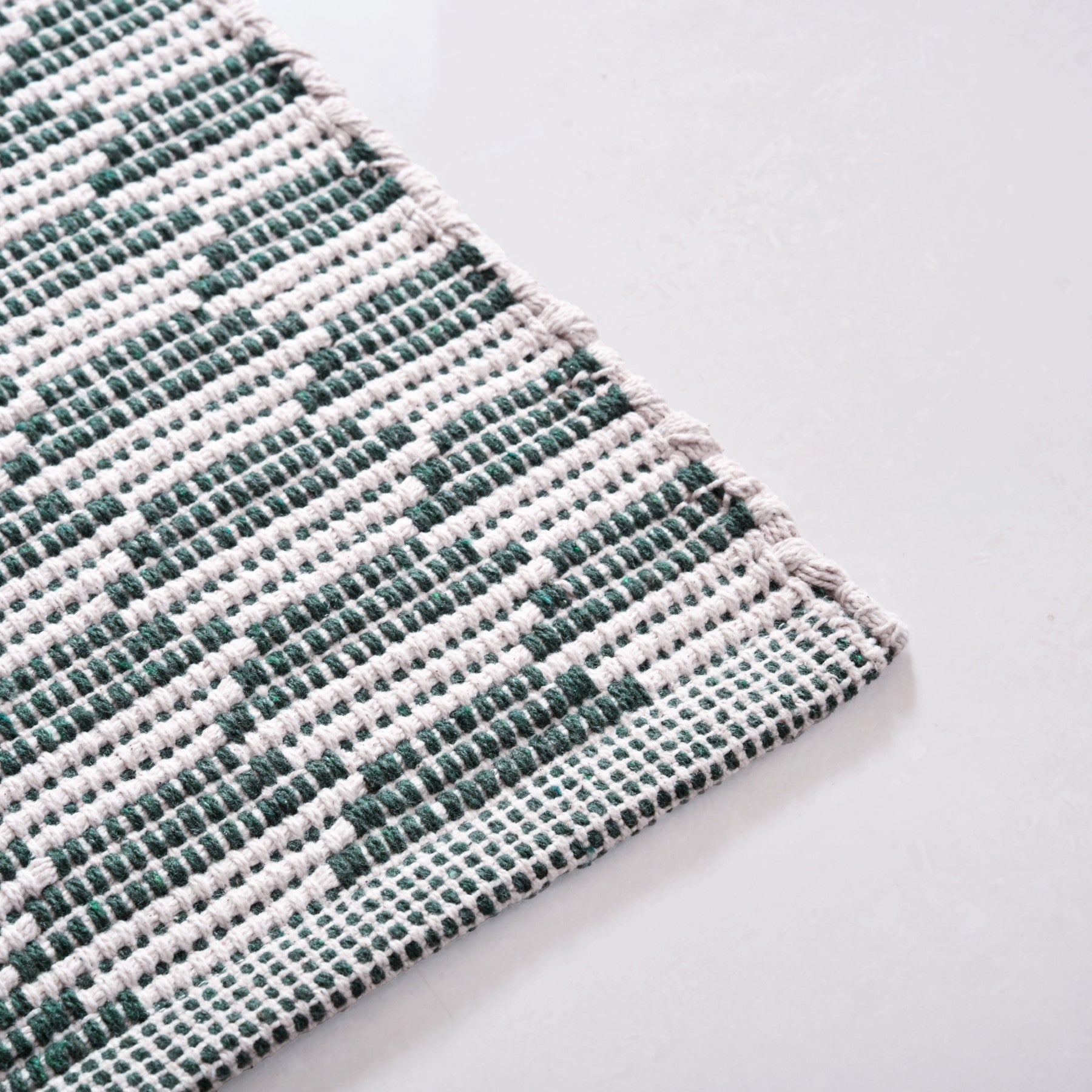 Green Boho White Floor Runner Cotton Mat 130x50cm