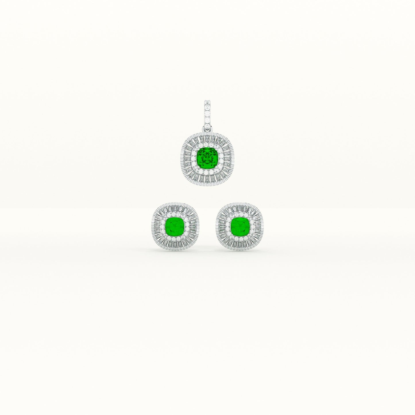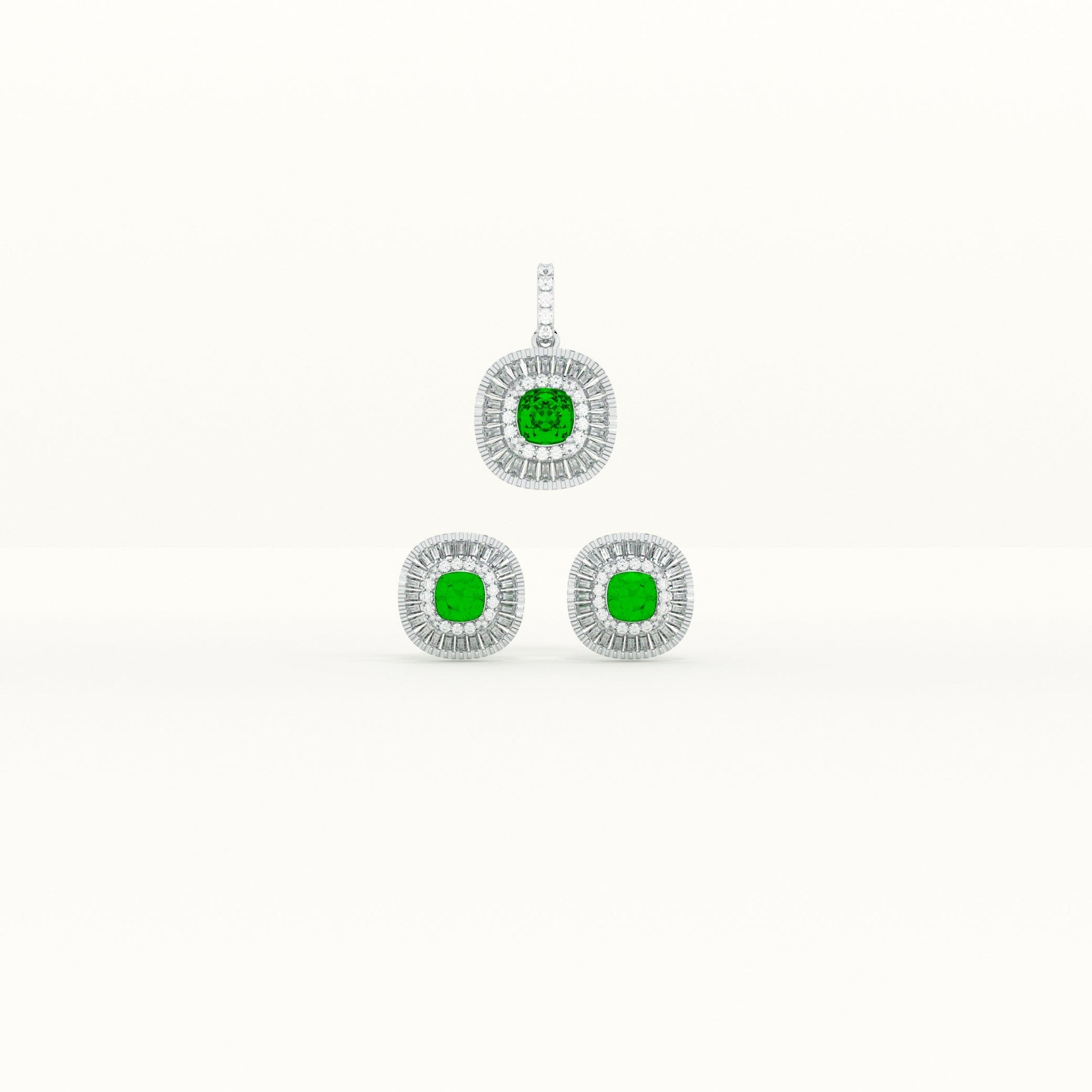 Green Crystal Halo 925 Sterling Silver Pendant Earring Set