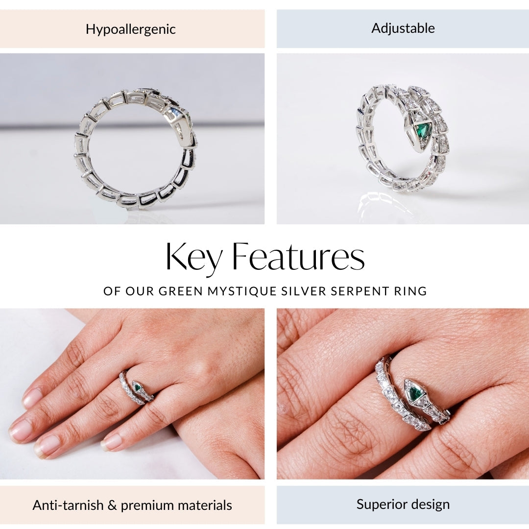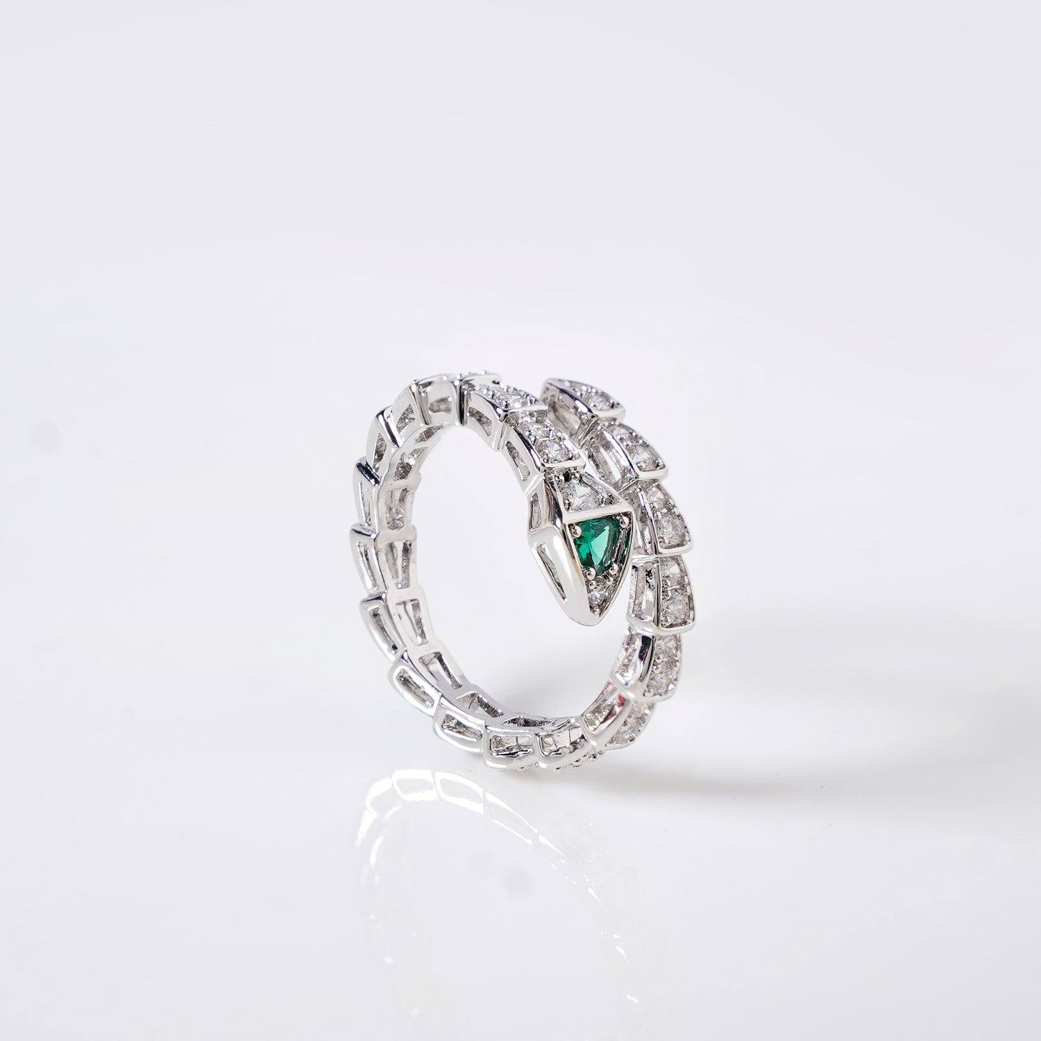 Nestyle: Pair the serpent ring with black or emerald green outfits to highlight the rich tones of the green stone.
