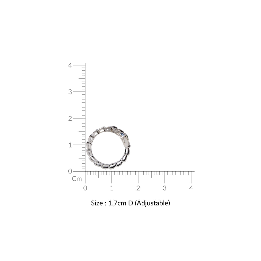 A serpent’s hypnotic allure meets timeless elegance in this silver-toned adjustable ring. Coiling gracefully around the finger, the intricately detailed serpent features a striking green stone on its hood, symbolising wisdom and transformation. Studded accents along its body add brilliance, enhancing its captivating design. Inspired by ancient mythology and regal jewellery, the serpent has long been a symbol of protection and hidden treasures. Designed for those who appreciate meaning in their jewellery, this bold yet sophisticated piece makes a powerful statement of strength and mystique.