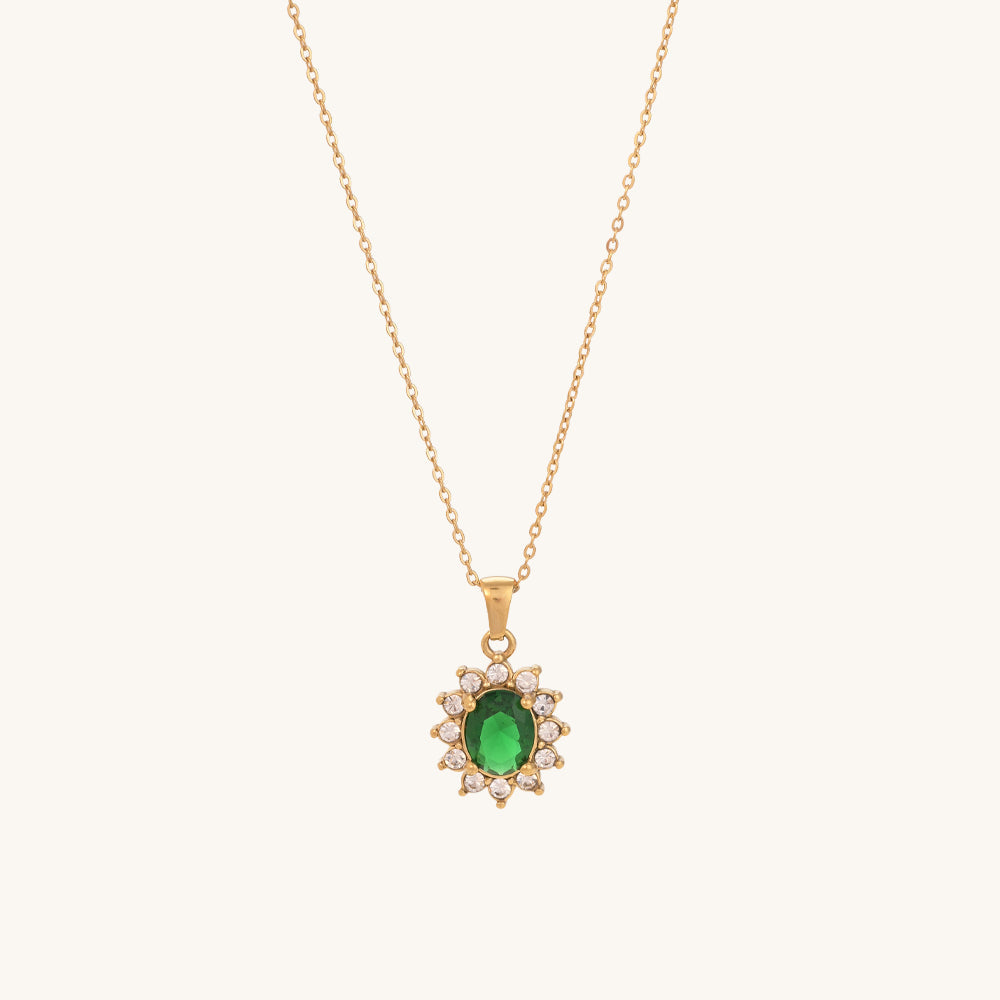 The Green Sapphire & Diamond Halo Pendant Necklace combines vibrant elegance with modern sophistication. Crafted in stainless steel with a radiant 18k gold tone, this waterproof and anti-tarnish necklace features sparkling green and white cubic zirconia in a halo design. Perfect for casual, office, or evening wear, it adds a refined, eye-catching accent to both everyday and festive ensembles.