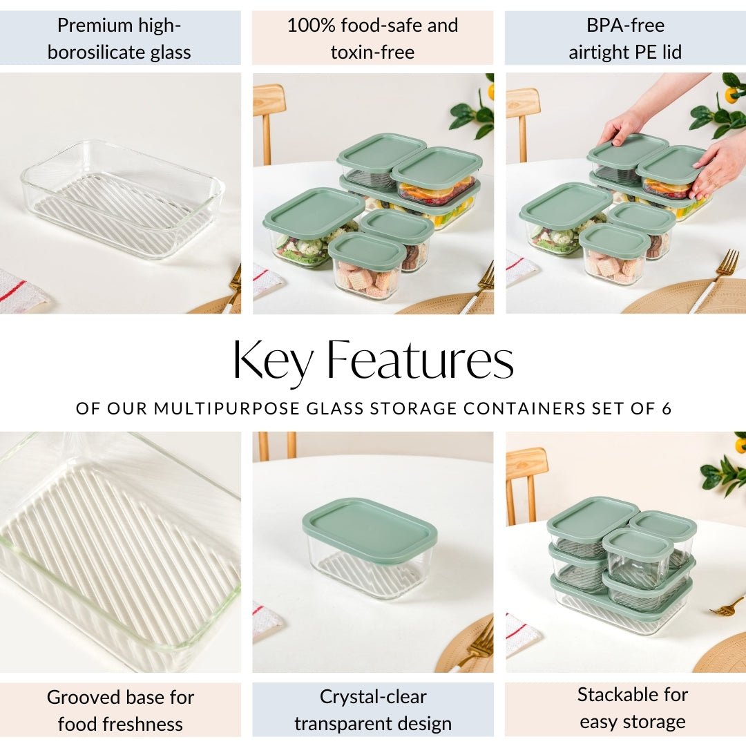 Groovo Multipurpose Glass Storage Containers Set Of 6