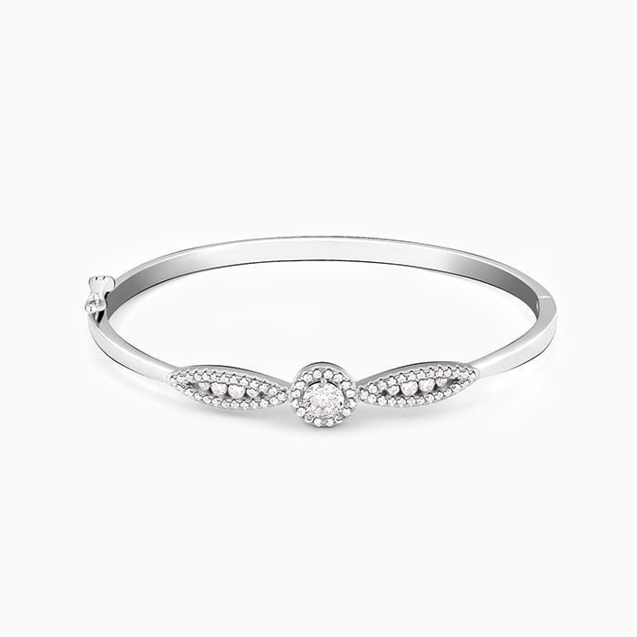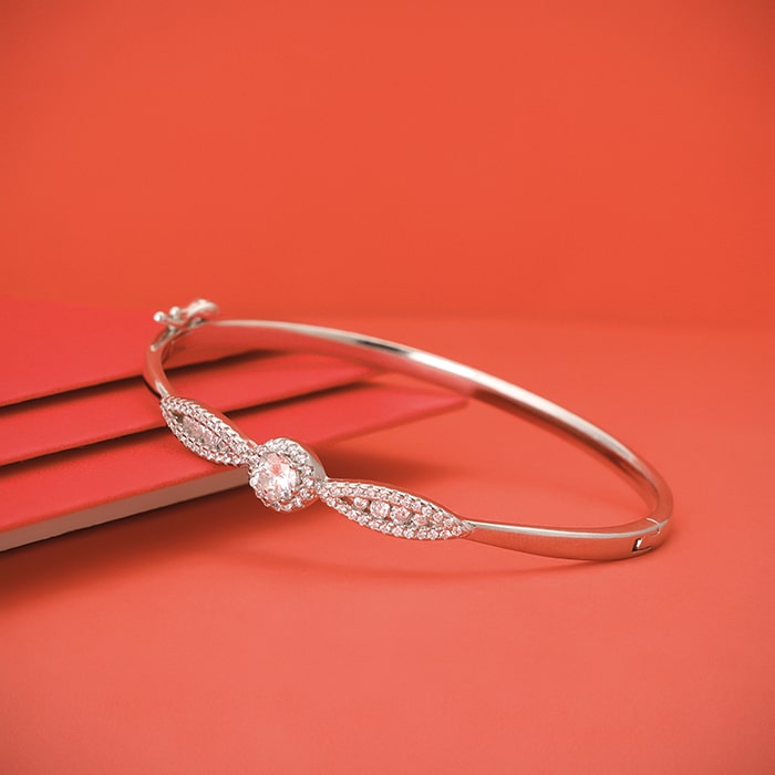 The silver bracelet has a beautiful and grand centrepiece with zircon embellishments
