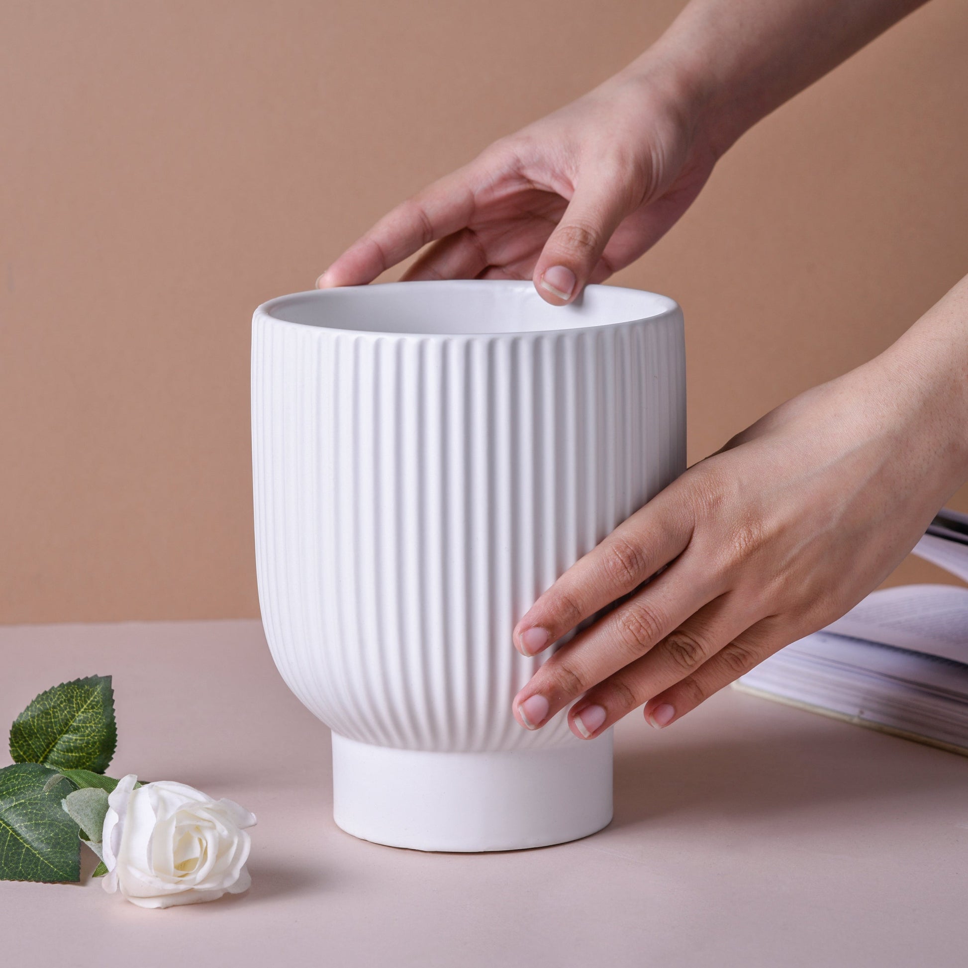 Nestip: The ribbed round ceramic pot can be used both as a flower vase and a plant pot.