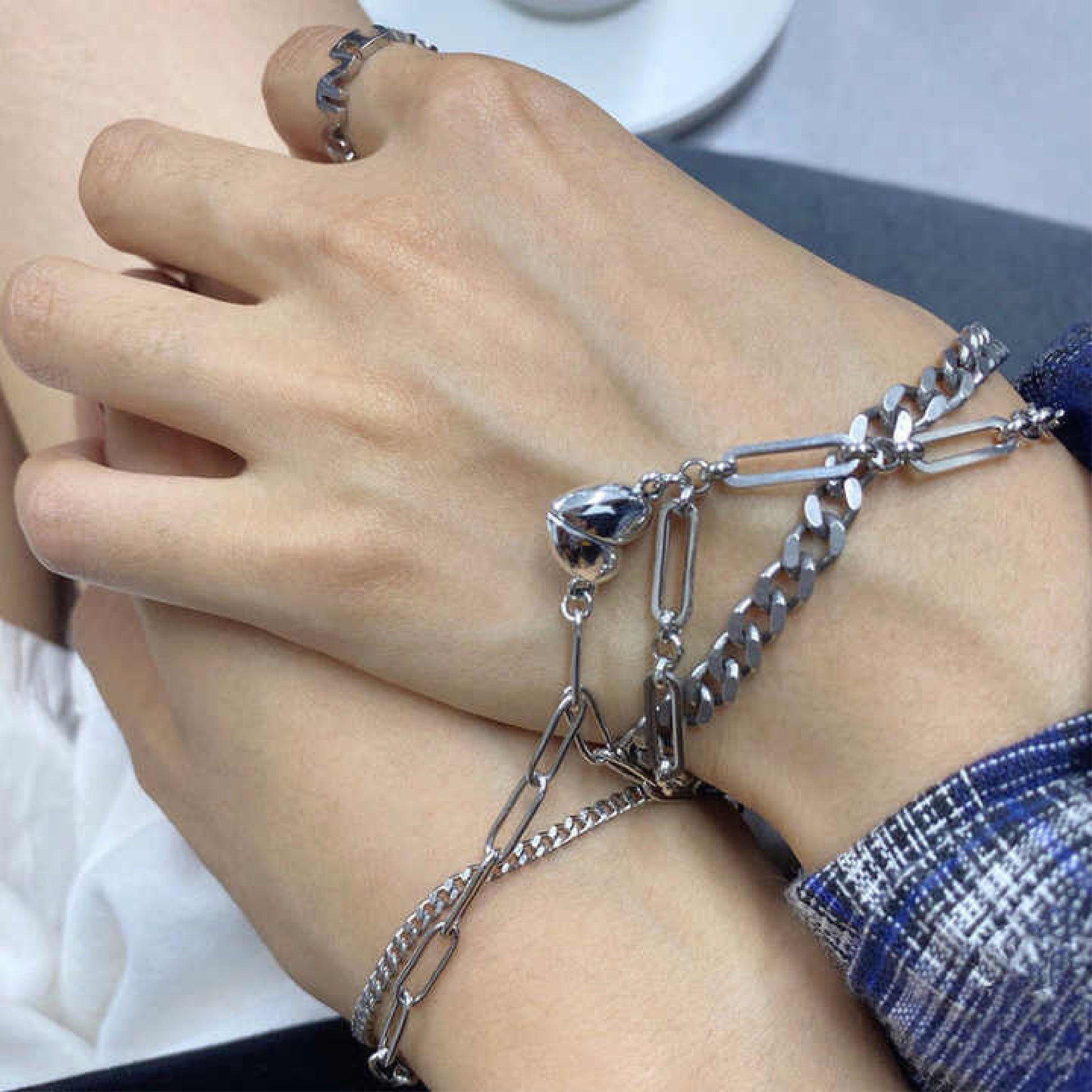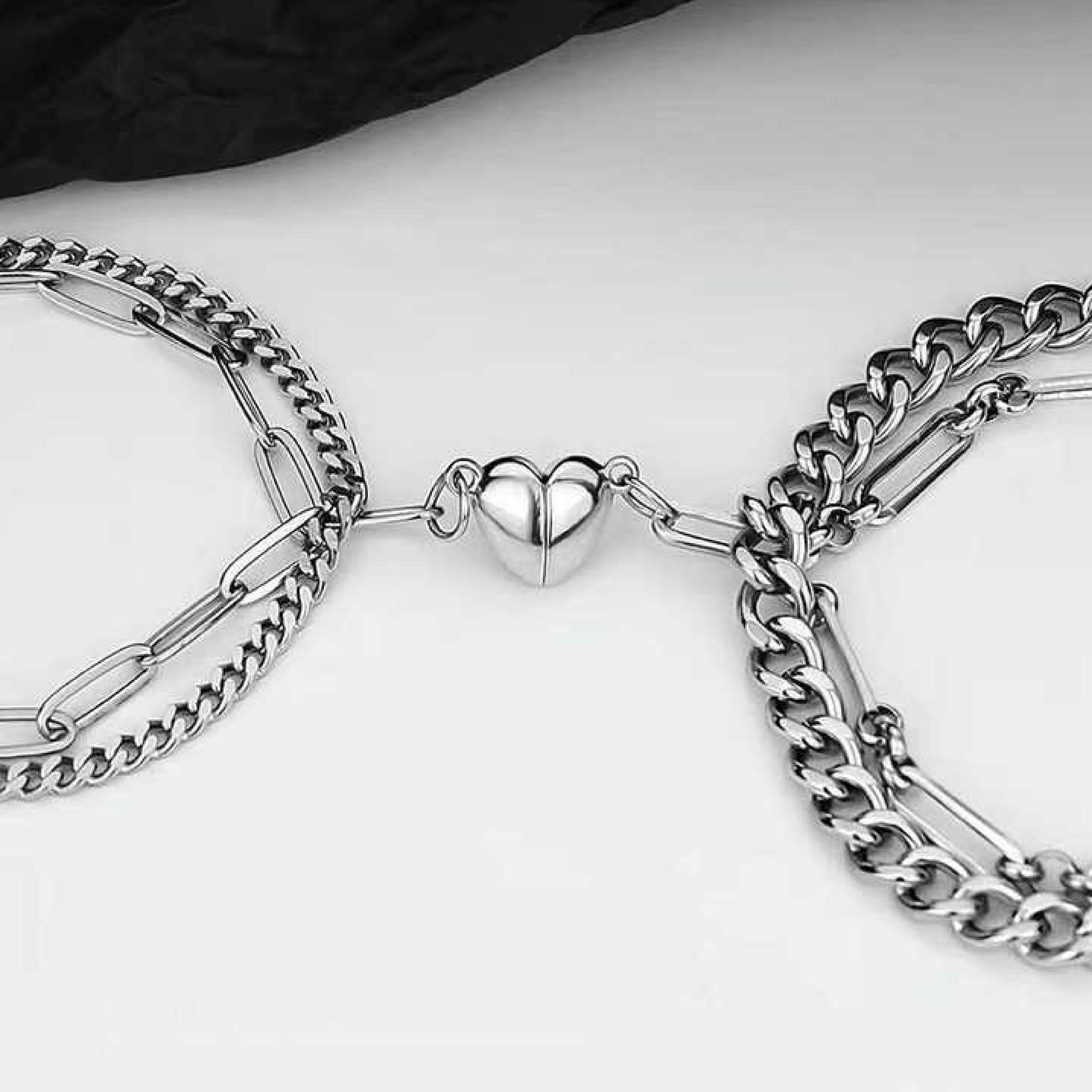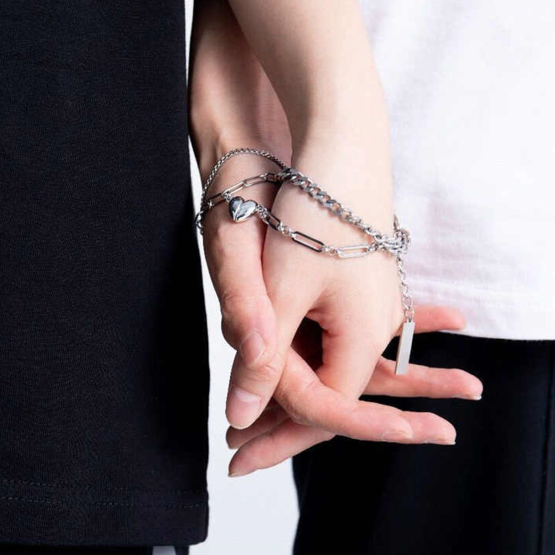 This couple bracelet has a heart charm with magnet in it to keep you and your loved one connected. These unique couples bracelets is a statement piece that you can wear for your everyday look too.