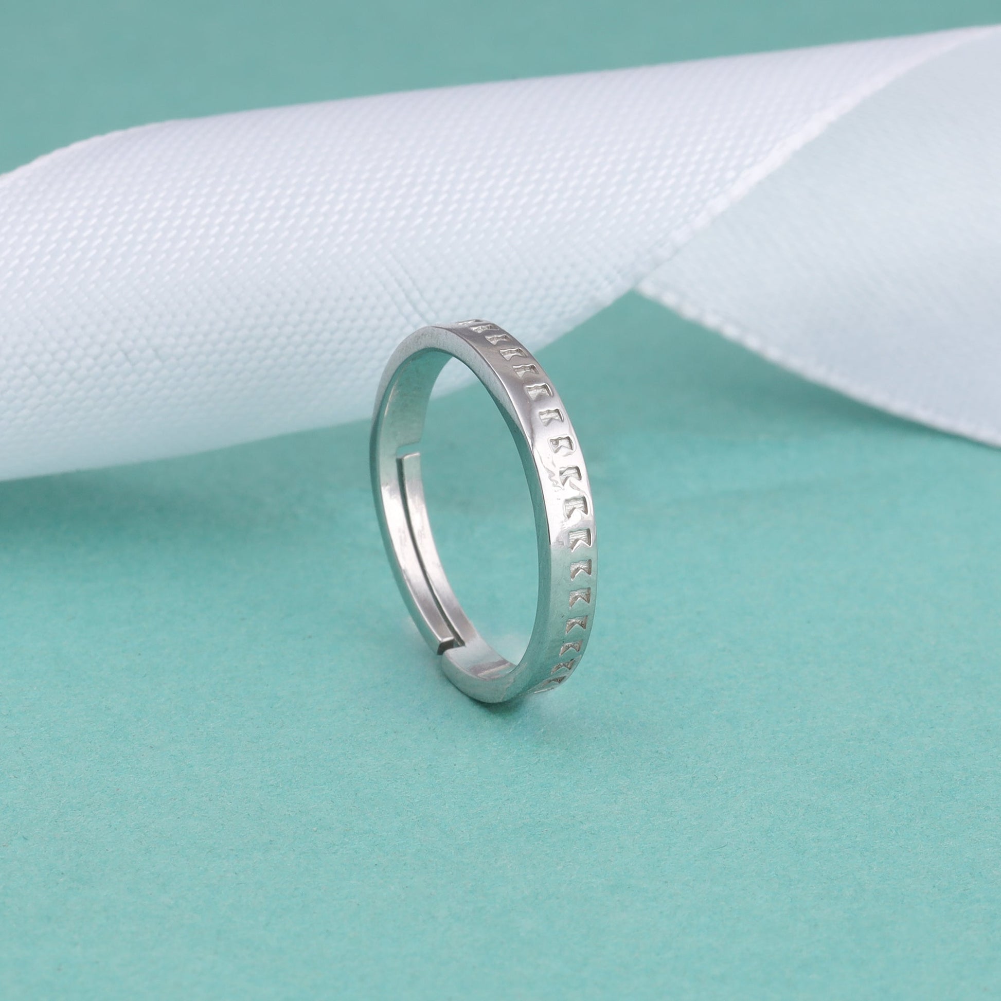 The Silver Dear Hearts Ring has a series of heart patterns all over the silver rim.