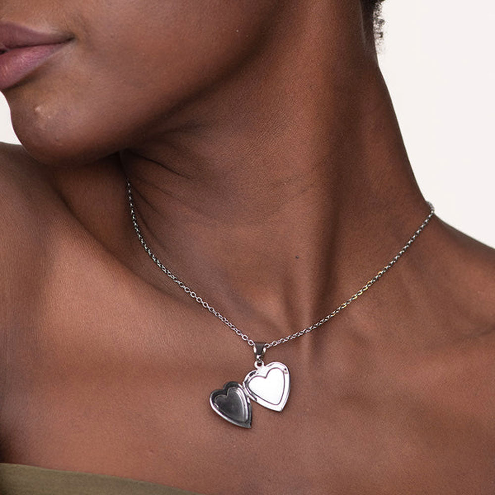 Timeless and sentimental, the Heart Locket Necklace is crafted in stainless steel, featuring a classic heart locket design that holds space for cherished memories while adding a touch of elegance to any outfit. Perfect for gifting or personal keepsakes, this pendant necklace combines meaningful symbolism with versatile style.
