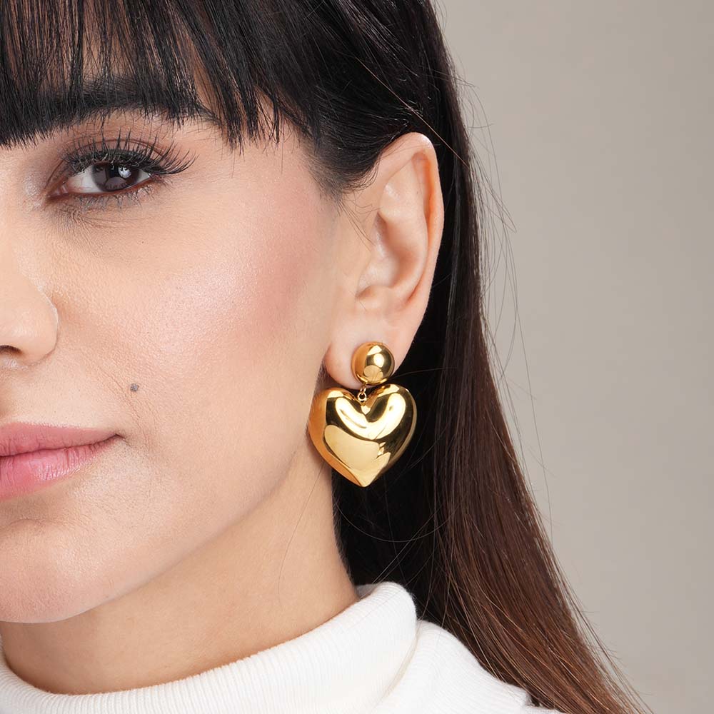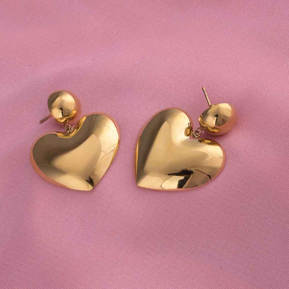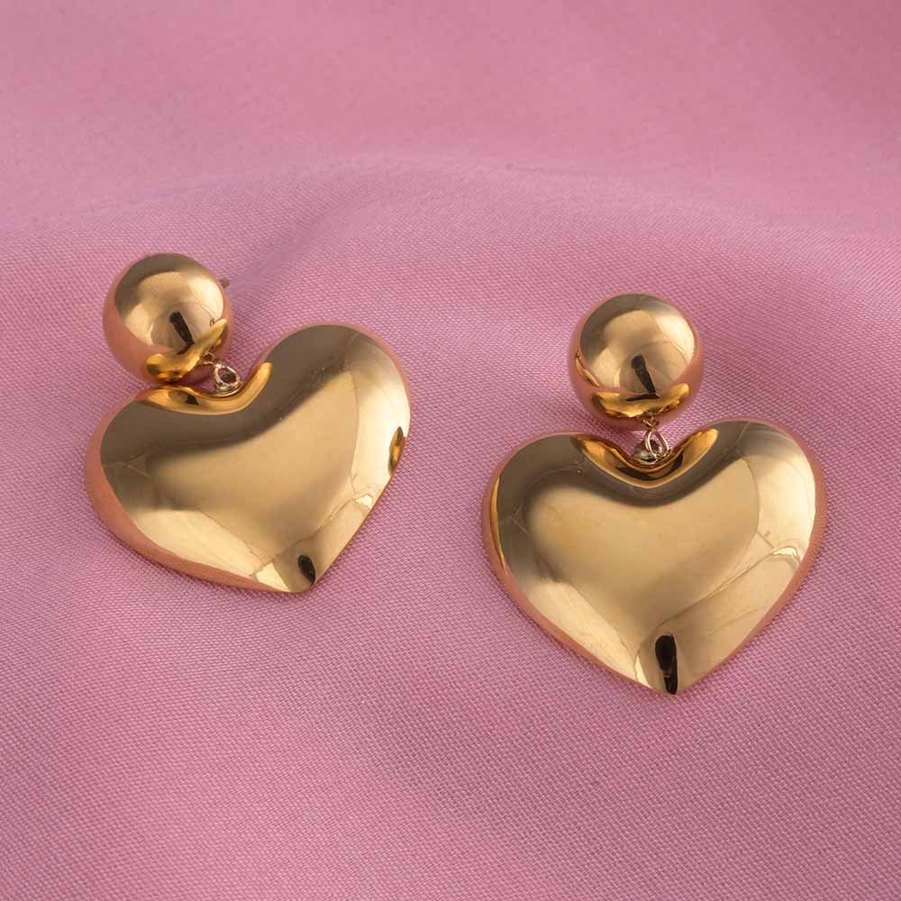 Romantic and elegant, these 18k rose gold plated Heart of Gold drop earrings feature a striking heart-inspired design that adds a warm, feminine touch to any outfit. The polished finish ensures lasting shine, while the waterproof and anti-tarnish properties keep them looking flawless. Perfect for casual chic looks, office sophistication, or evening glam, these earrings make a statement of love and elegance.