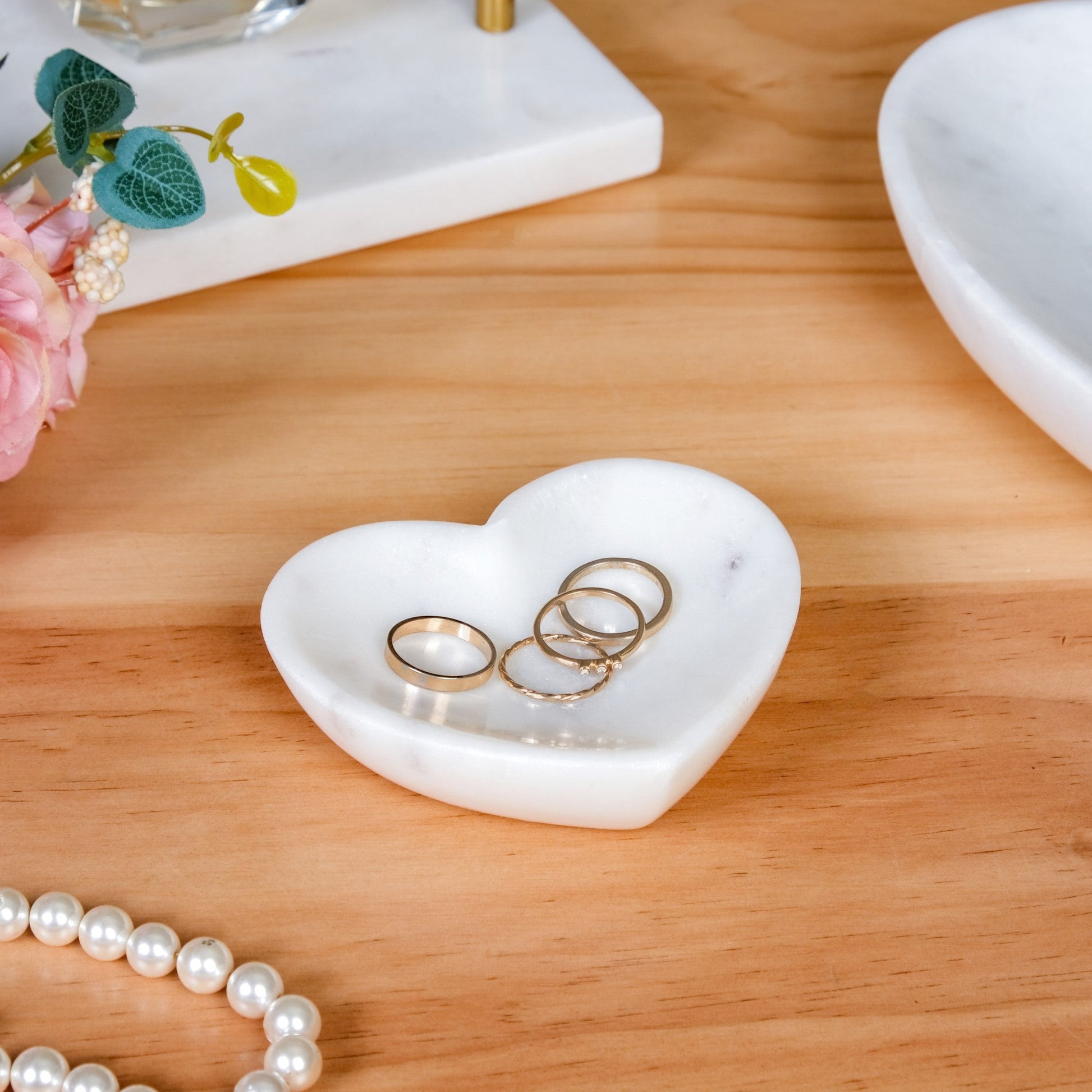 Perfect for organising your small accessories or serving as a decorative accent, this marble trinket dish combines function and elegance. The unique heart-shaped design makes it a charming addition to any vanity or tabletop setting.