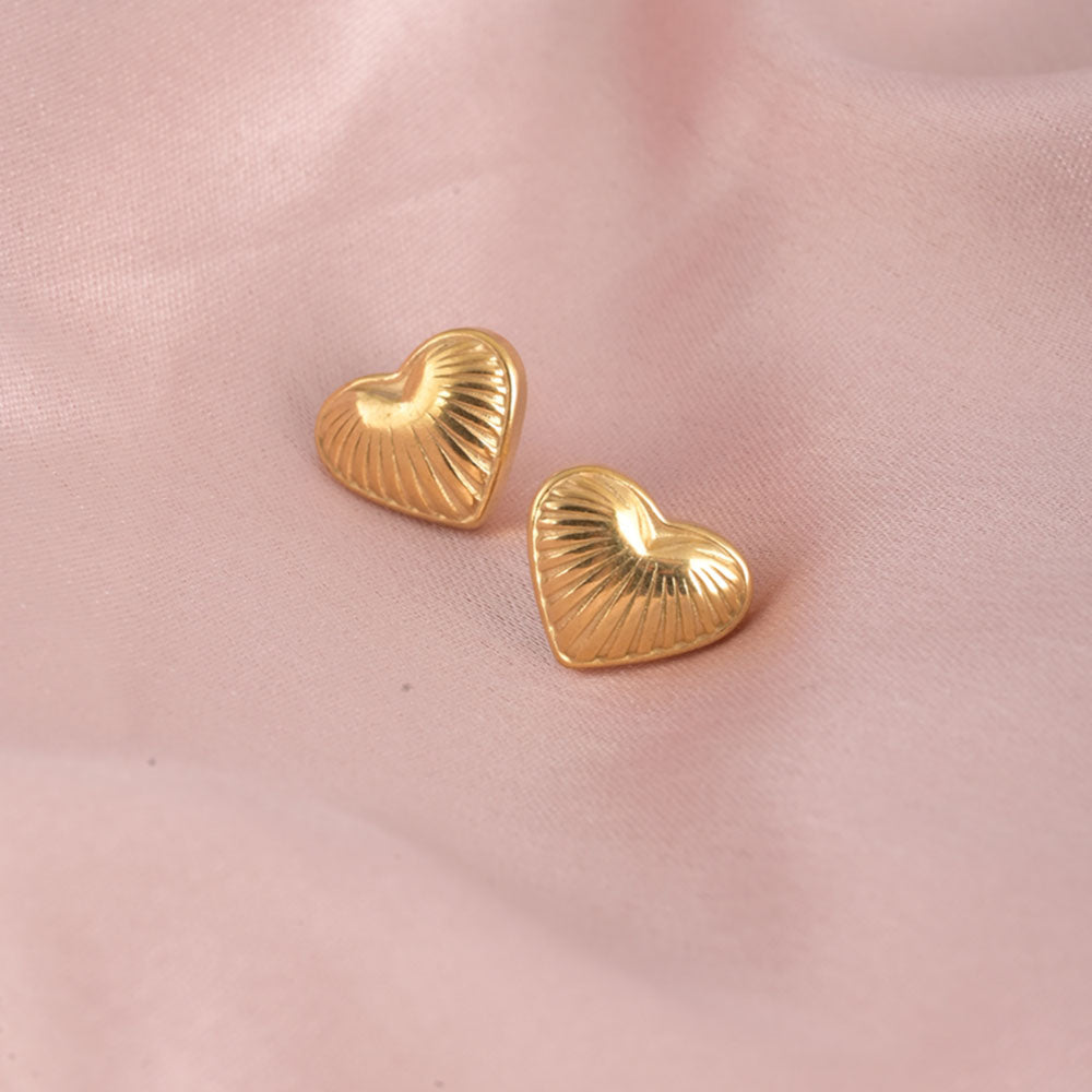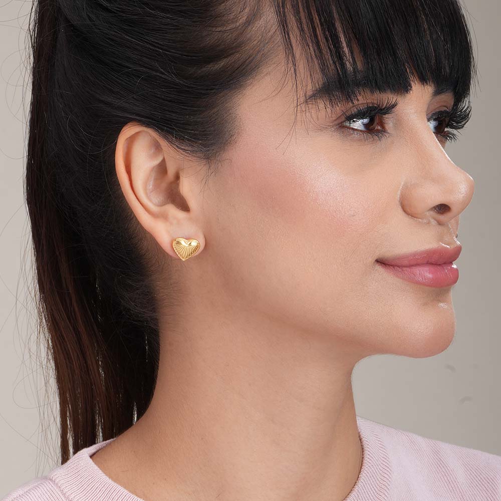 The all-new Heart Rays Earrings are both minimalistic and charming with their shimmery 18K gold-tone plating.