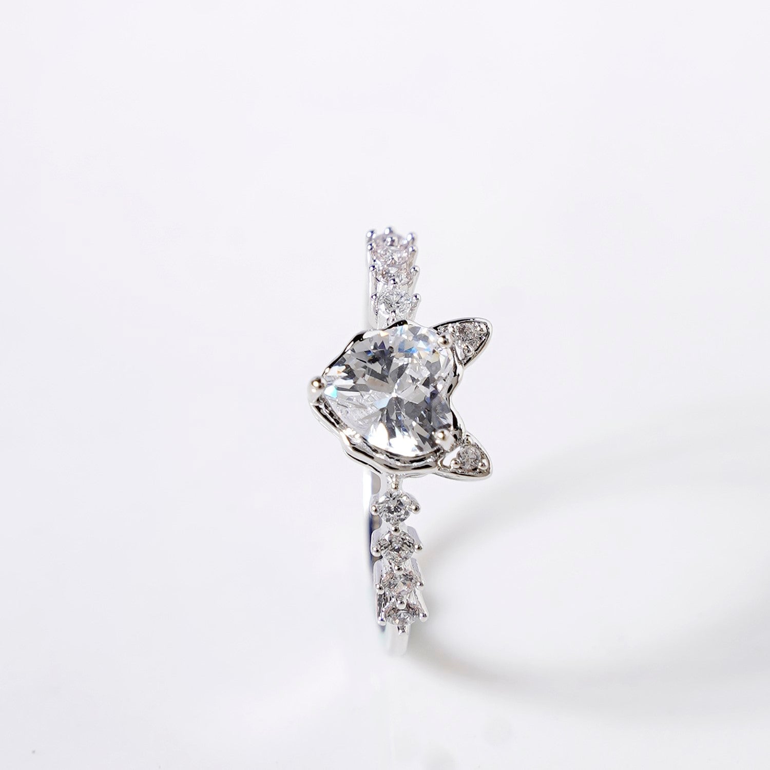 A ring that speaks of fierce devotion and unbreakable strength, this ring is more than just an accessory, it’s a statement. At its center, a mesmerising heart-shaped stone glows with an irresistible allure, set securely within a polished silver embrace. Adding an unexpected edge, two sculpted, horn-like stone structures rise on either side, symbolising resilience and untamed beauty. The band itself shimmers with an intricate arrangement of luminous stones, reflecting every flicker of light in a dazzling display.