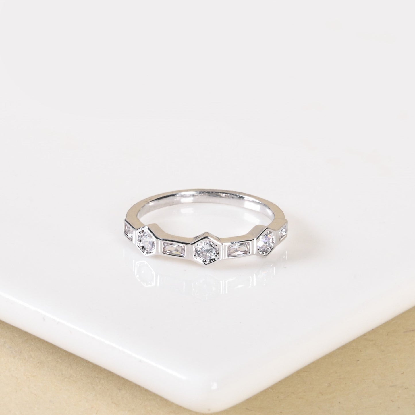 Some accessories just get it right—like this thin silver ring. With their delicate tile and hexagon stones, strike the perfect balance between minimal and eye-catching. Their geometric design adds just the right amount of edge, making them easy to wear every day. Whether you're dressing up or keeping it casual, these silver rings fit right in, effortlessly elevating your style.