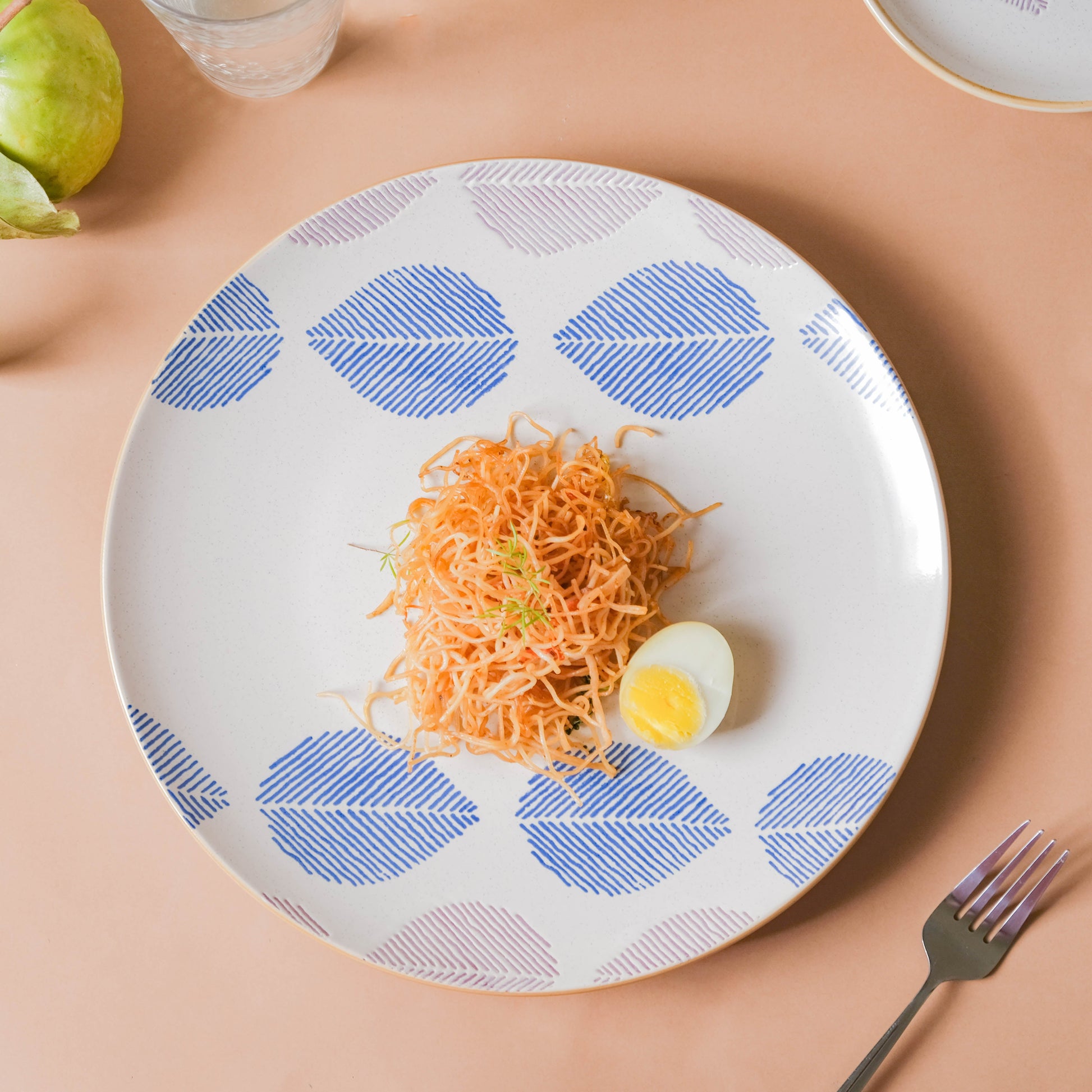 Nestip: If the food is kept on the white part of the plate, the leaves will heighten the serving.