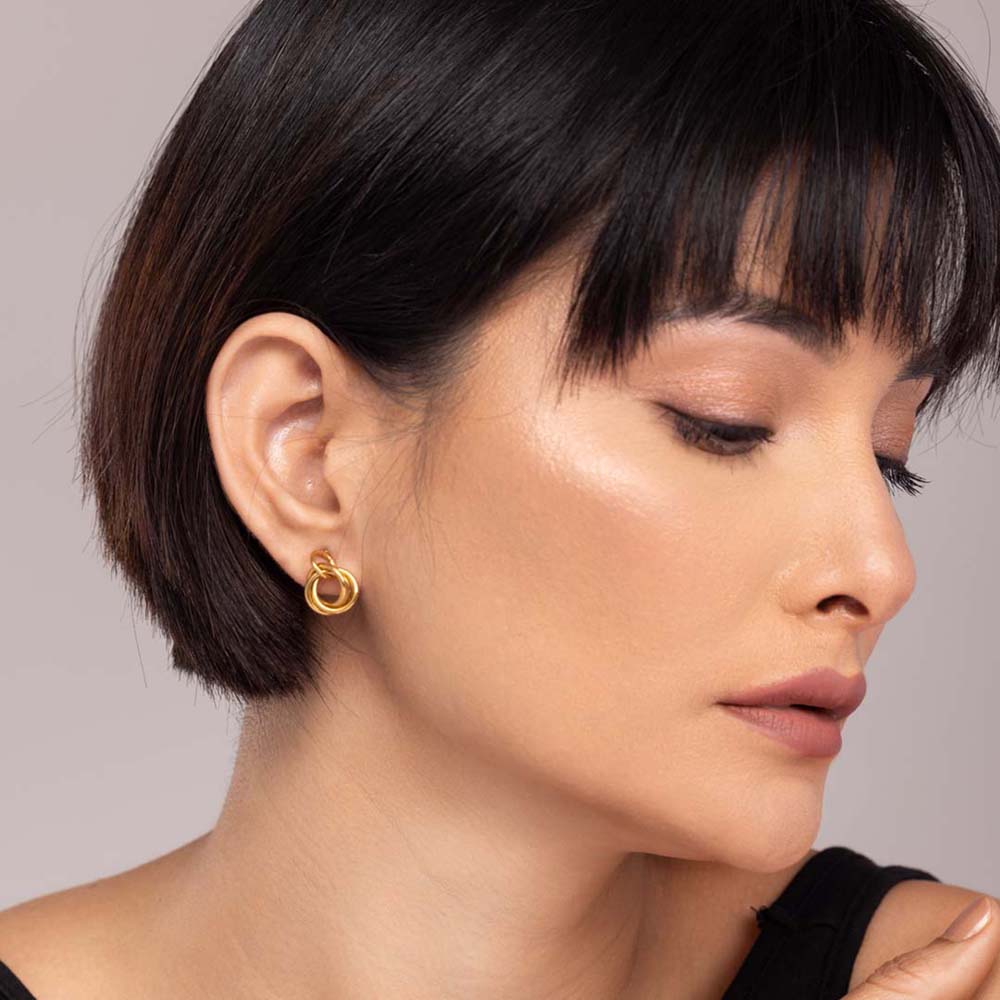 Discover the allure of Infinite Tangle Earrings, meticulously crafted to empower and elevate your style. These earrings gold for women transcend conventional adornments, embodying grace and individuality. The gold-plated finish radiates opulence and ensures lasting quality. Owning these earrings is about embracing an extension of your unique elegance and flair, adding an extra touch of confidence to every step.