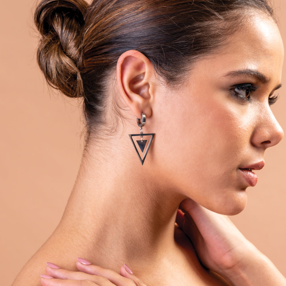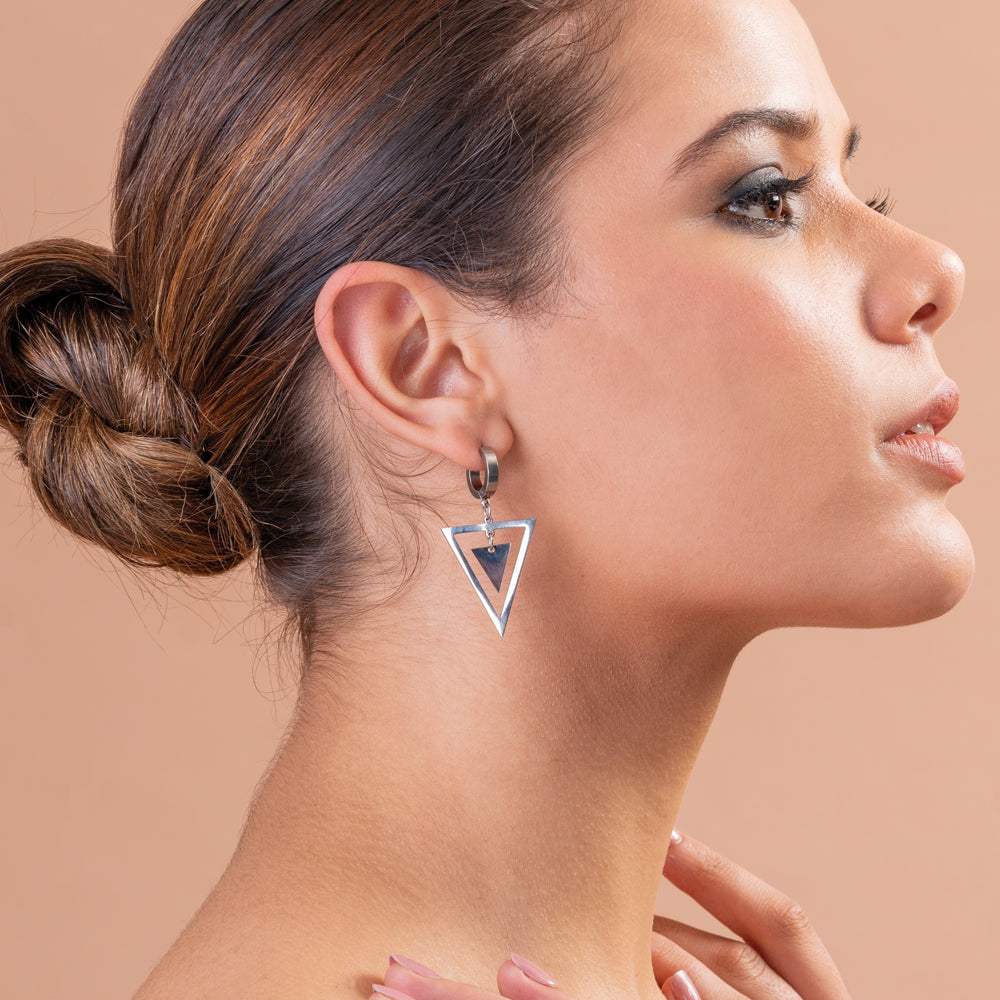 3. Make your Inverted Triangle Hoop Earrings the center of attention by keeping a sleek and simple hairstyle like a ponytail or low bun.