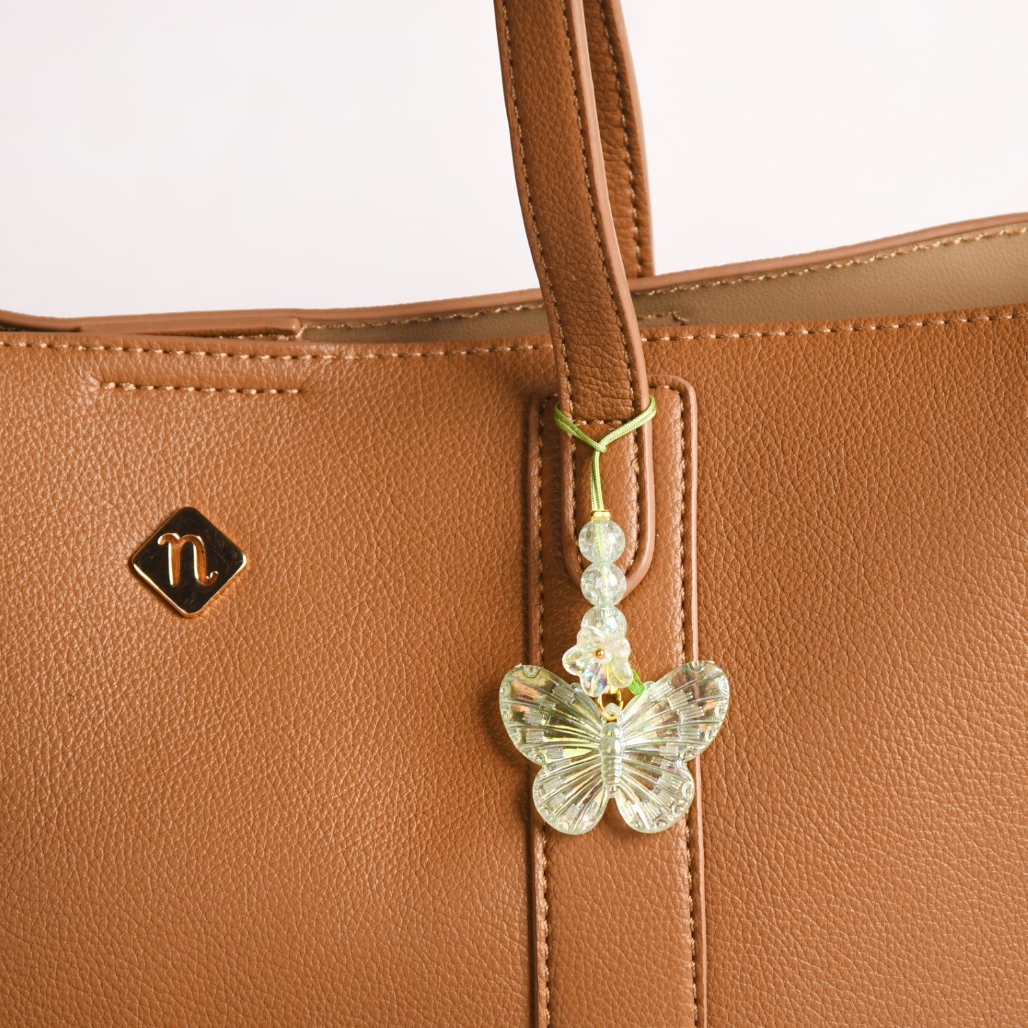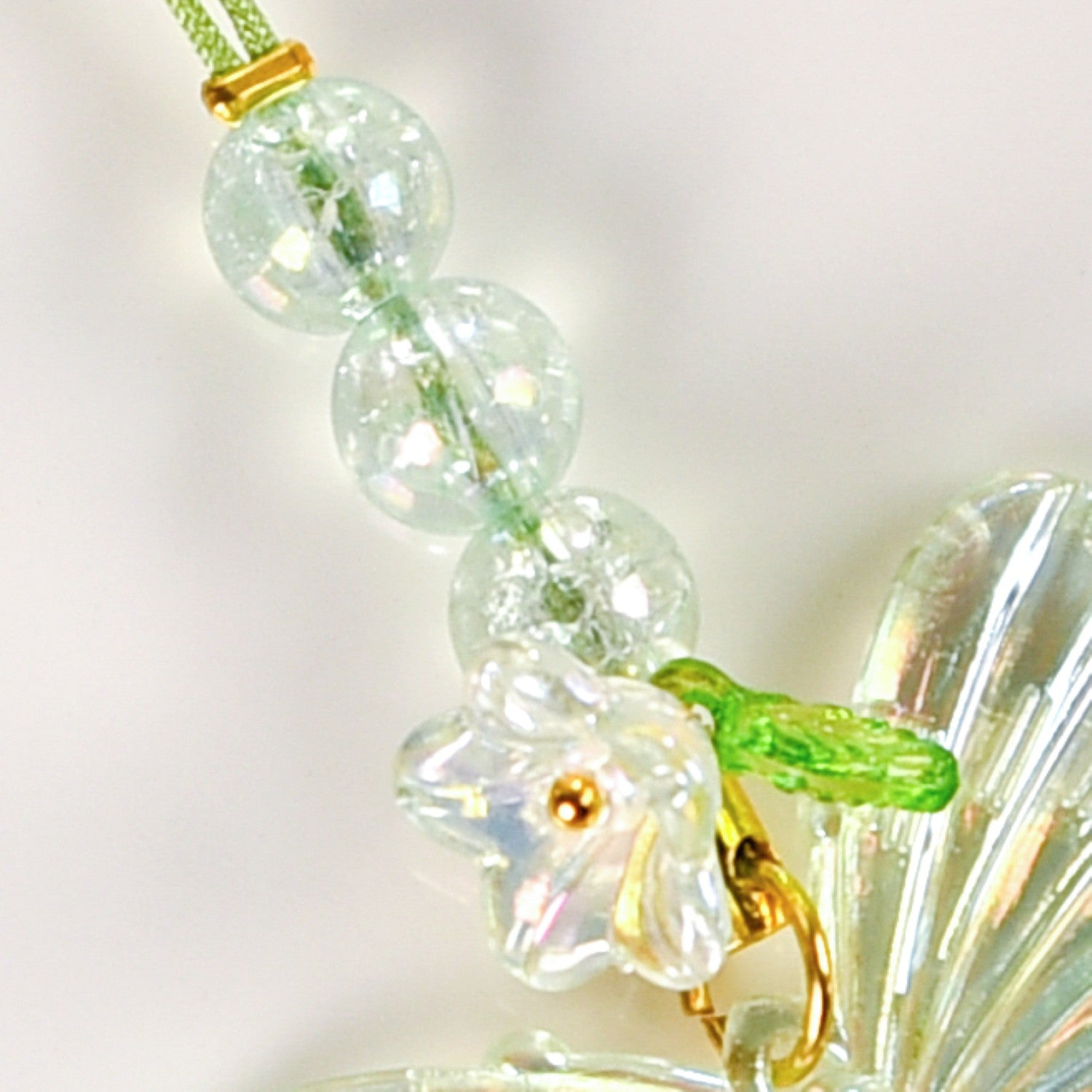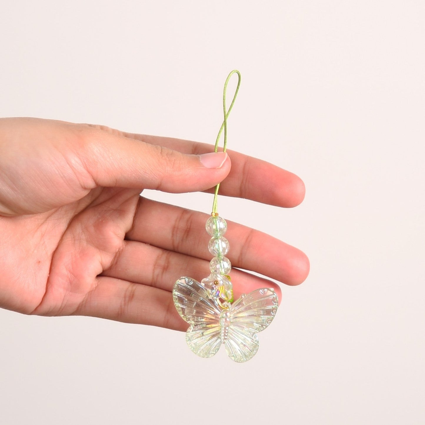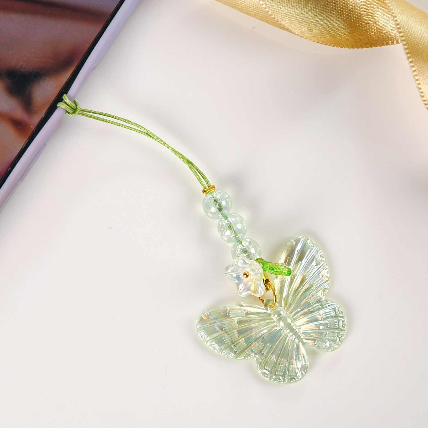 Add a touch of whimsy to your phone with this charming phone accessory. Crafted with delicate iridescent translucent green beads, this phone charm is designed to bring a burst of colour and elegance to your device. The loop ensures easy attachment, while the sweet flower charm, accompanied by a vibrant green leaf, and the shimmering butterfly add a playful yet refined touch. Made from durable PVC, this phone charm blends style and functionality, offering a cheerful way to personalize your phone. Perfect for those who love little details, this accessory will make your phone stand out in the most delightful way.