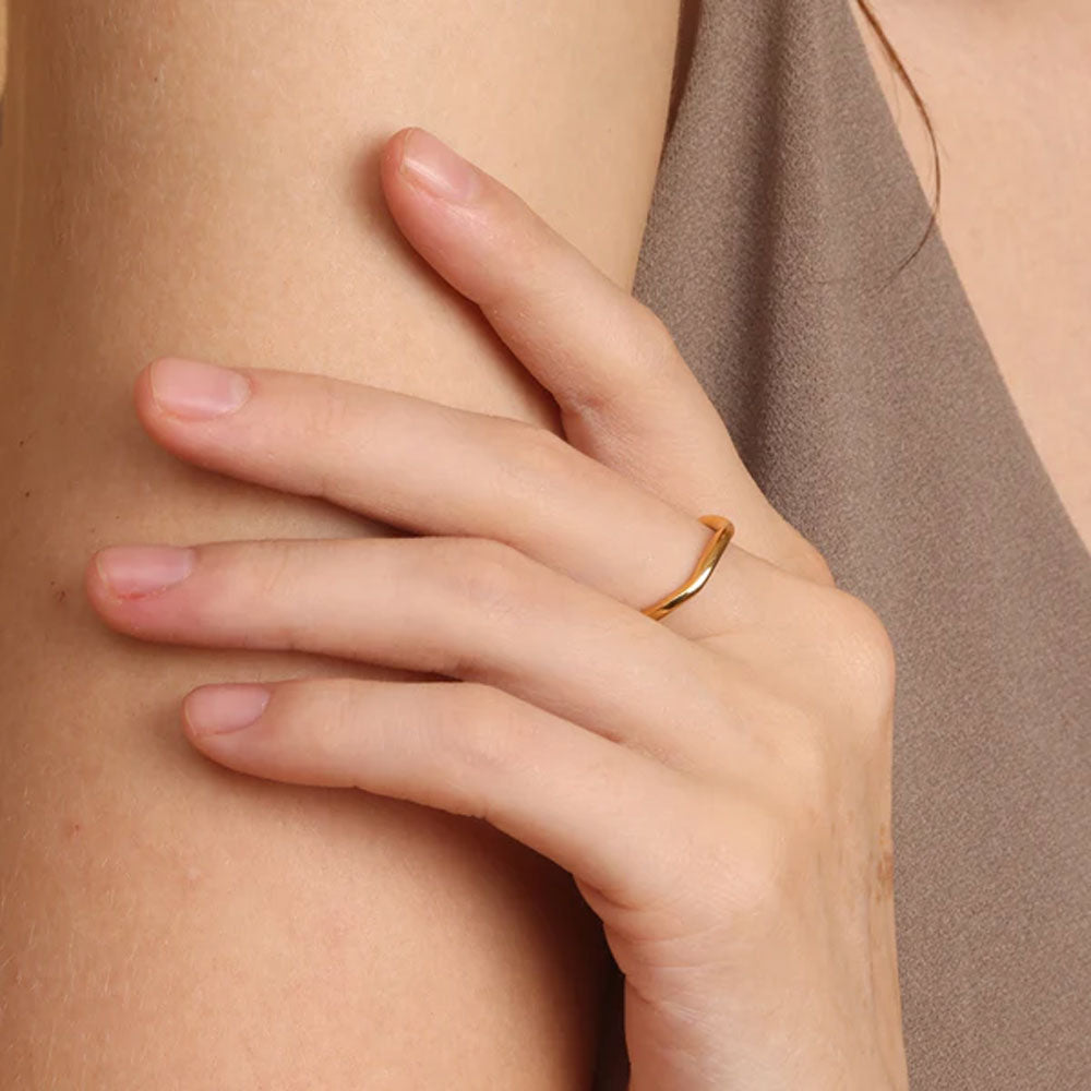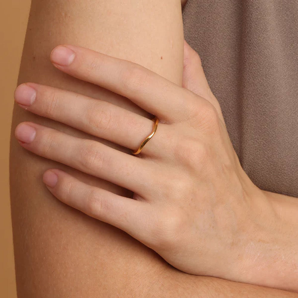 Experiment with stacking the Irregular Wave Ring with other delicate bands or geometric-shaped rings. Mix and match different metals and textures to create a personalized and trendy combination that reflects your individual style.