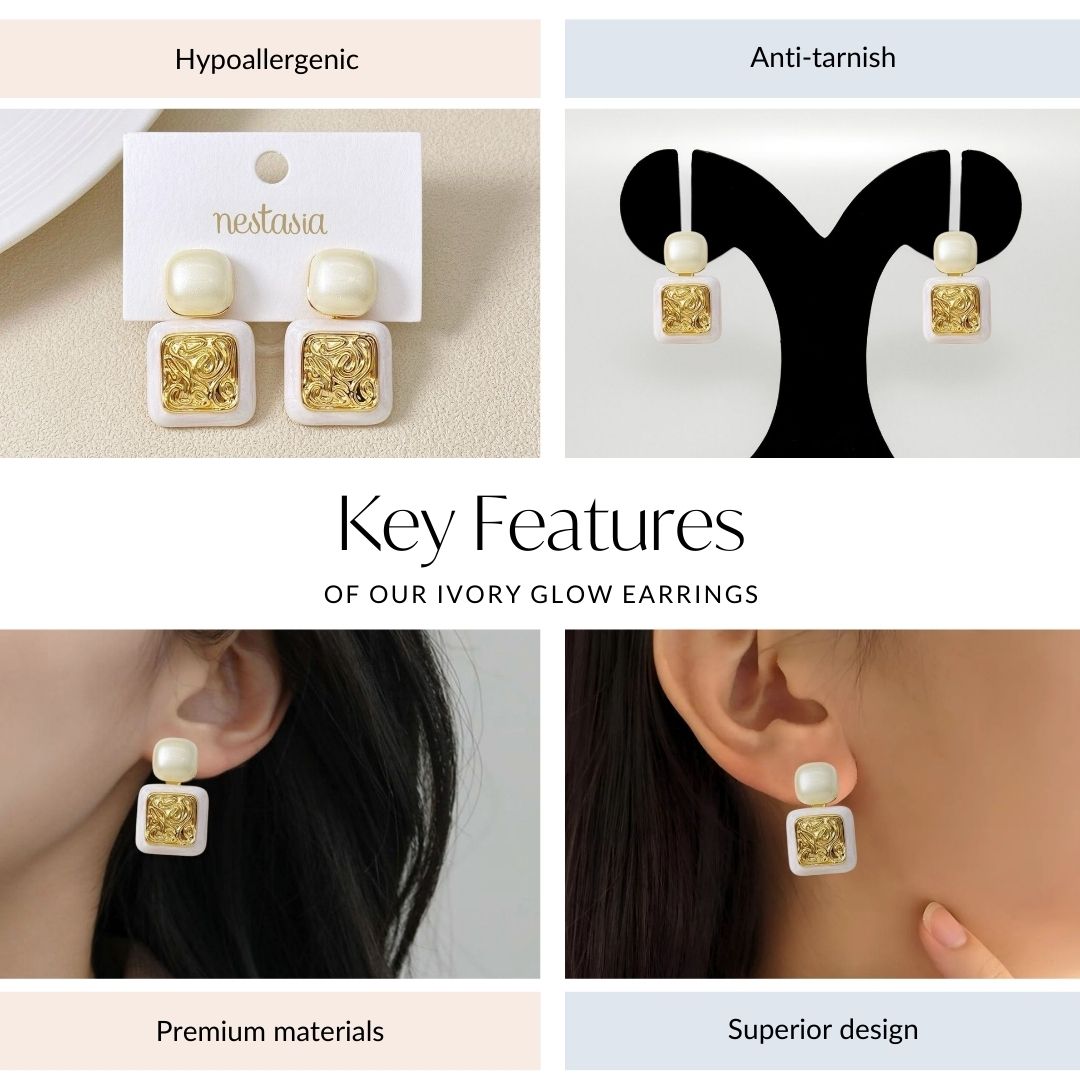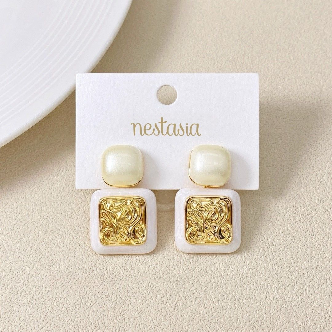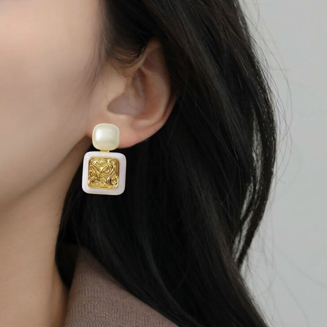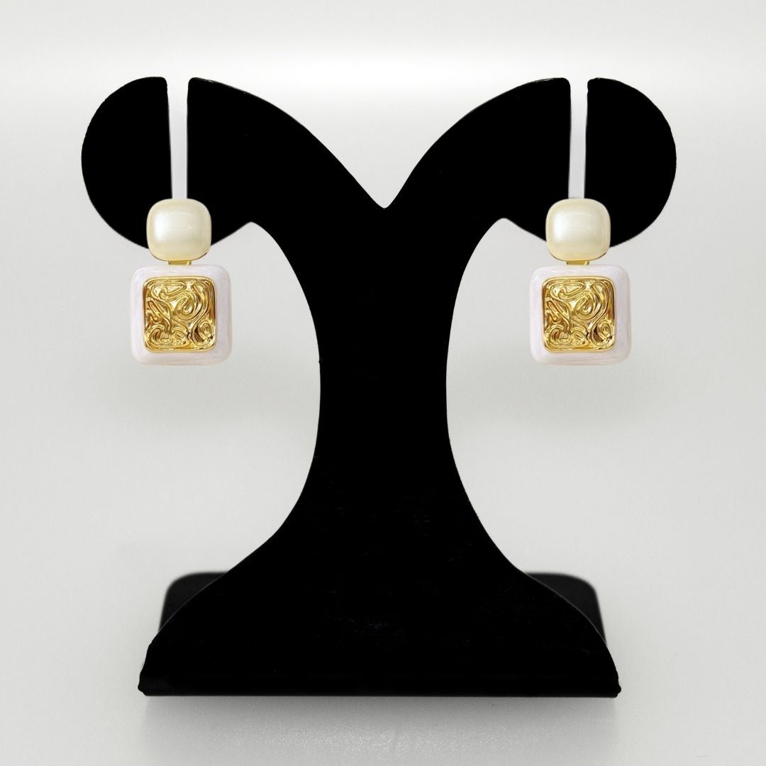 Nestyle: Pair these earrings with a sleek low bun and a white or champagne silk blouse to enhance their luminous pearl accents and gold detailing.