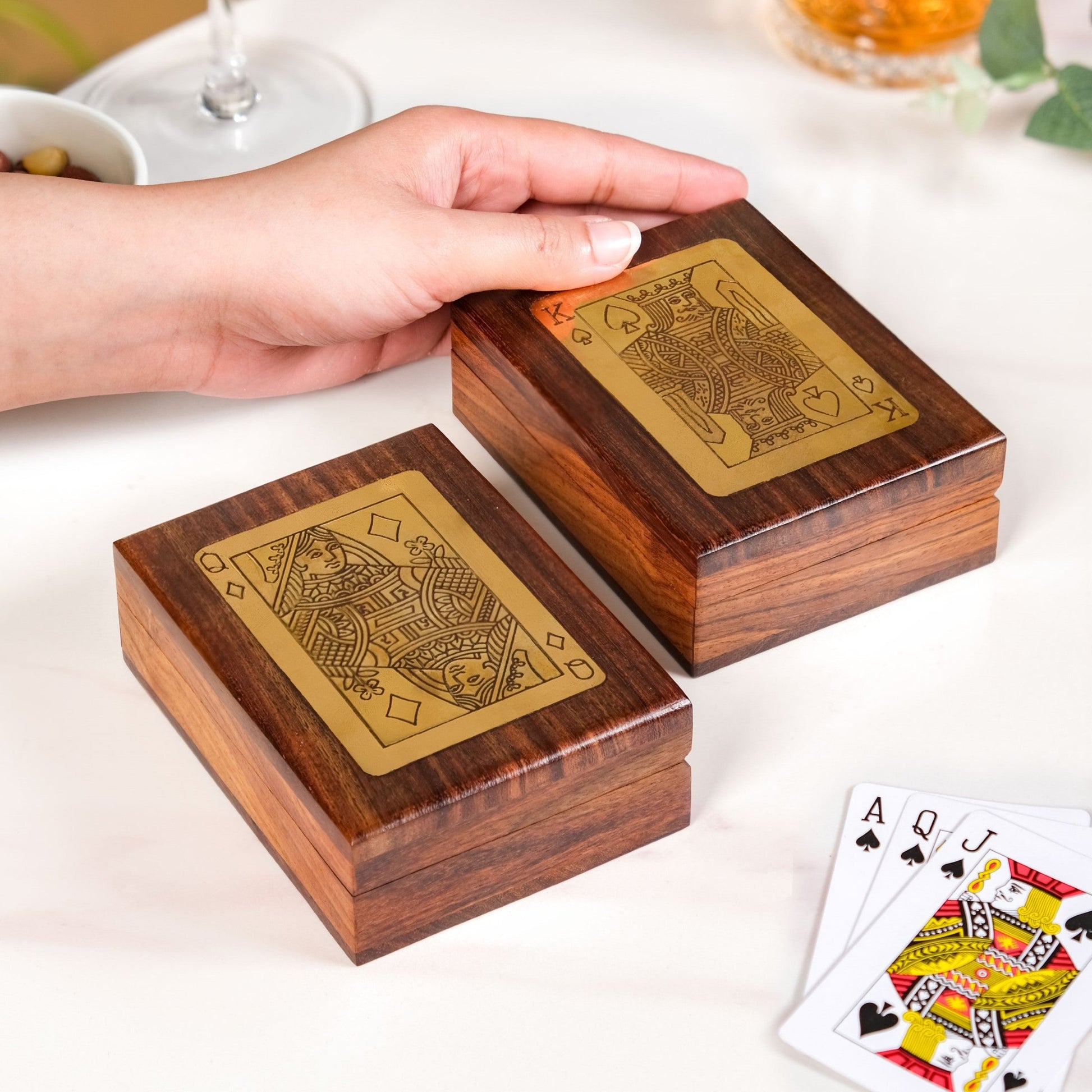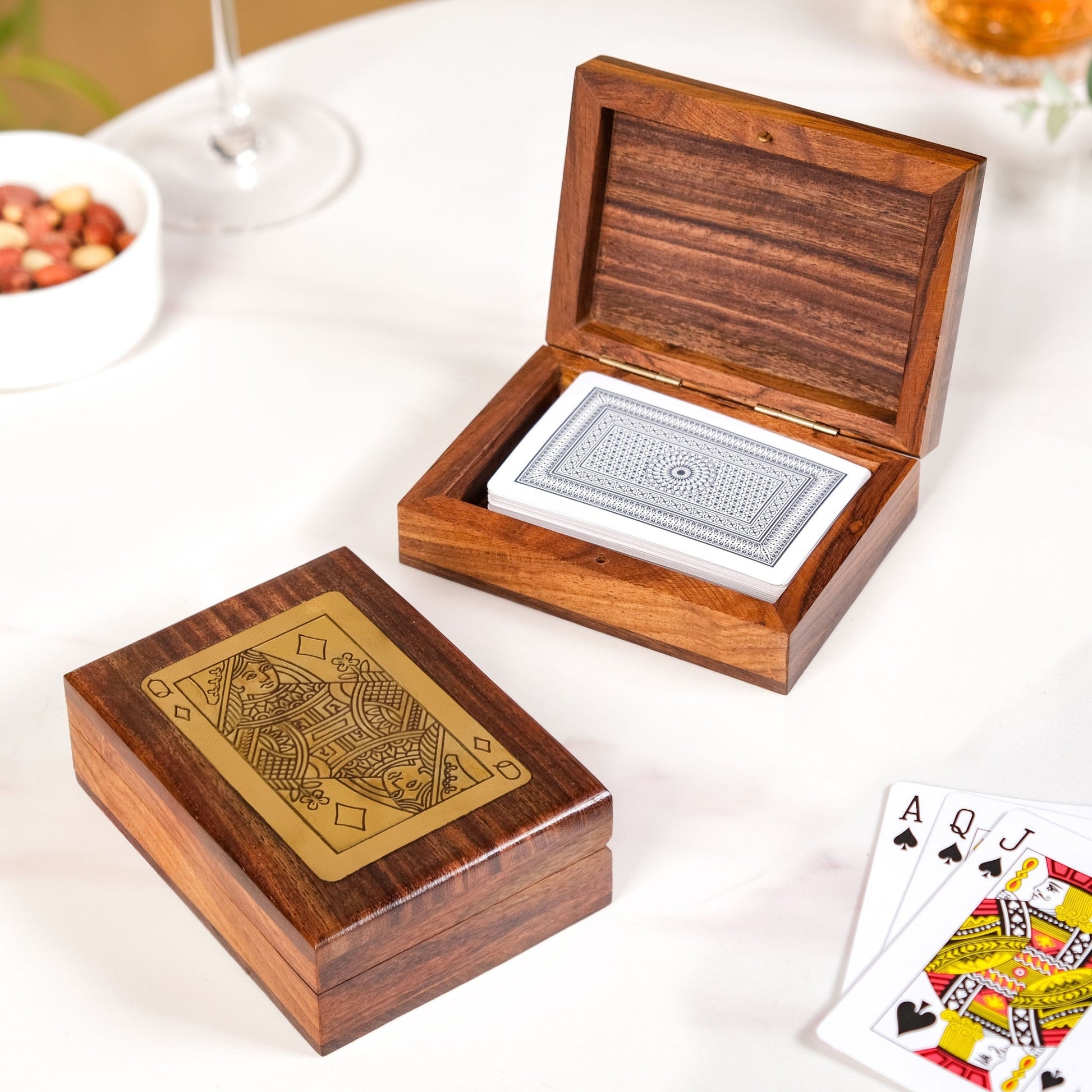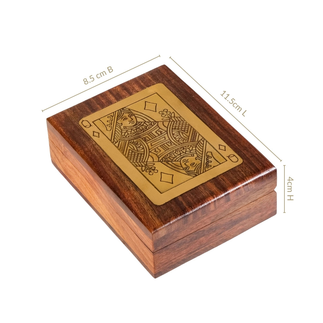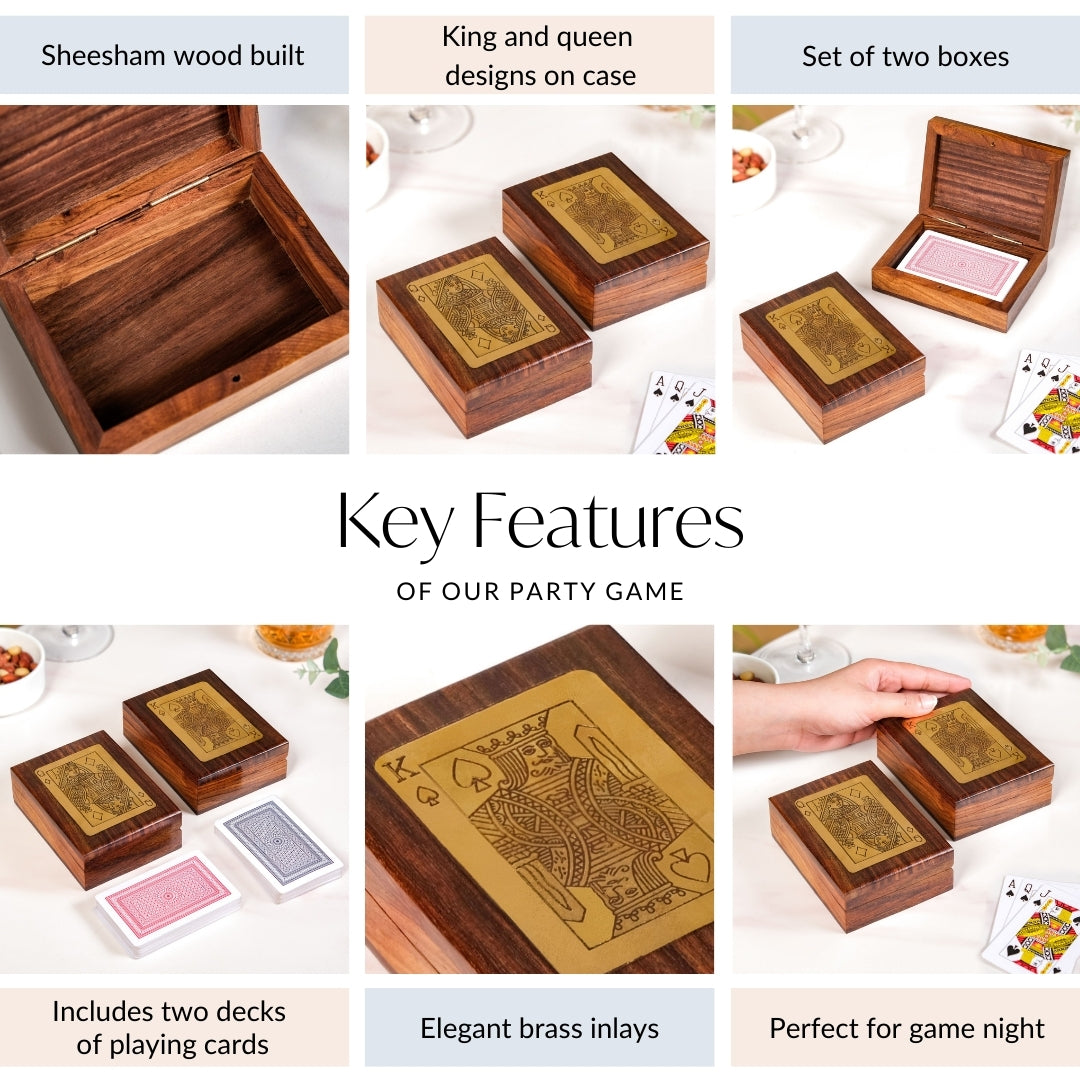 Benefits: The set provides more than just a place to keep your deck of cards; it's a statement piece. The sturdy Sheesham wood construction and secure brass hook lock keep your playing cards protected from dust and damage, ensuring they last for countless games to come. This King and Queen set is the perfect addition to a game night, adding a touch of sophistication to your card games.