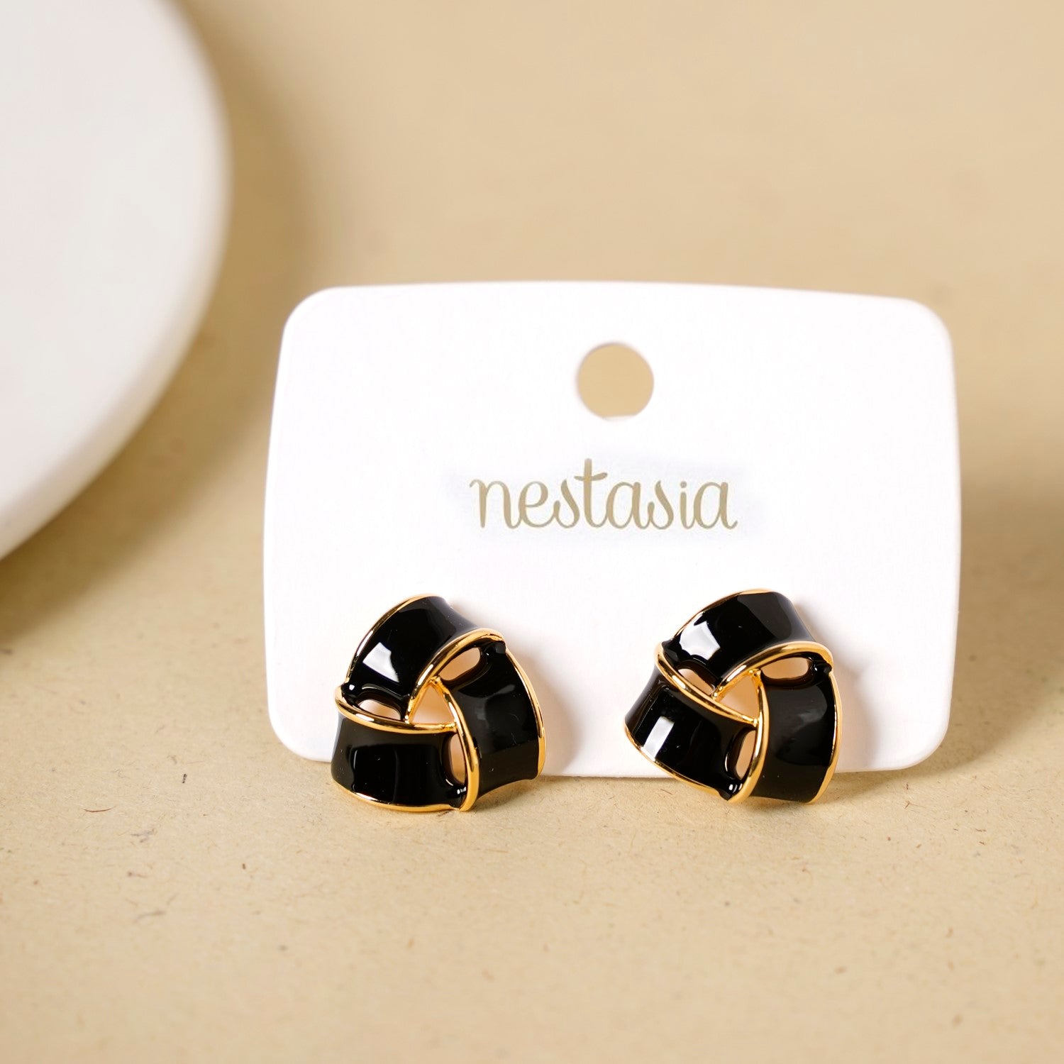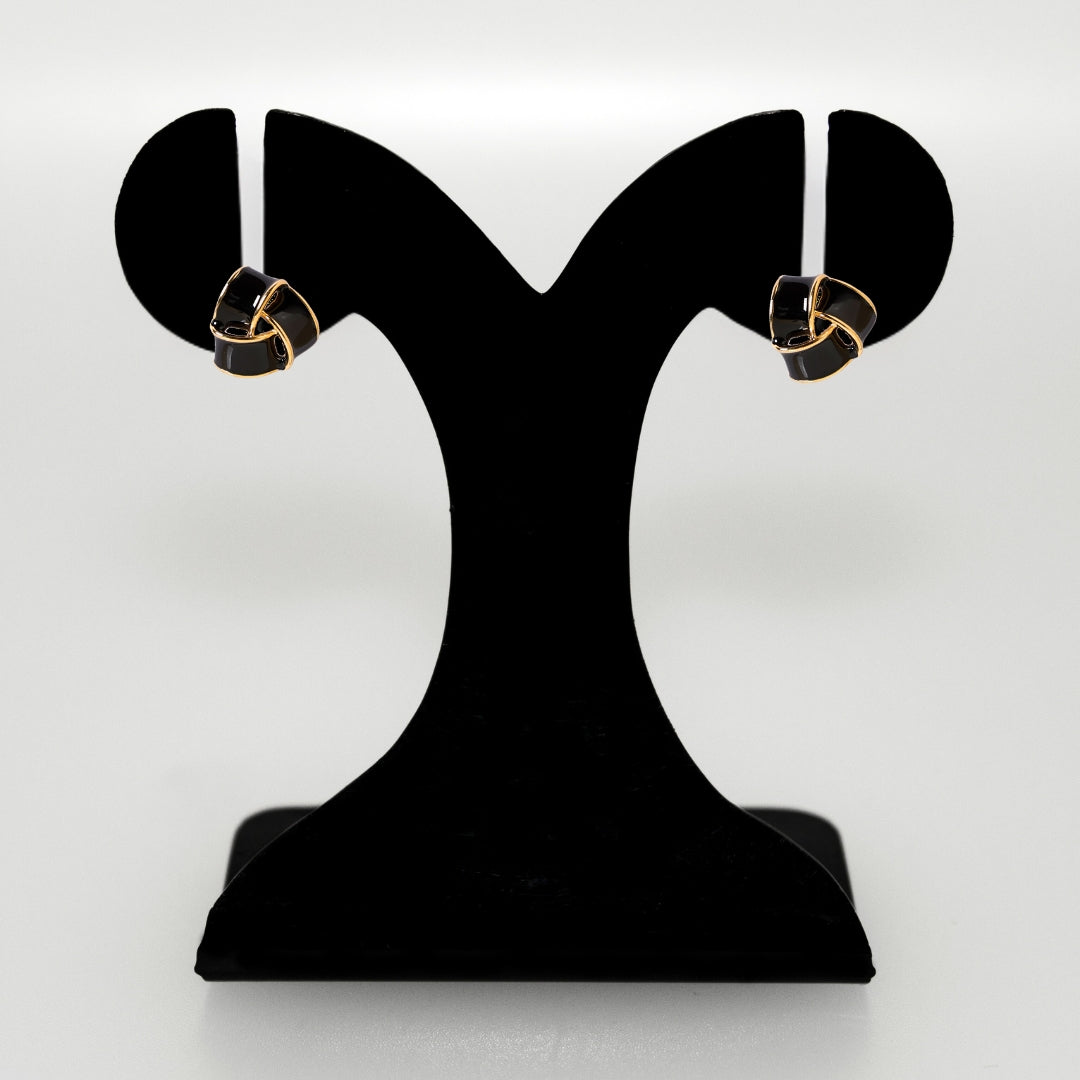 Timeless and elegant, these stud earrings are the perfect addition to any collection. Inspired by the ancient Celtic knot, a symbol of eternity, unity, and interconnectedness, they carry a deep significance. The design features a bold triangular shape framed in gold, with black accents that add a touch of sophistication. The stud earrings are a classic blend of tradition and modern elegance, offering a refined statement that pairs effortlessly with any occasion.