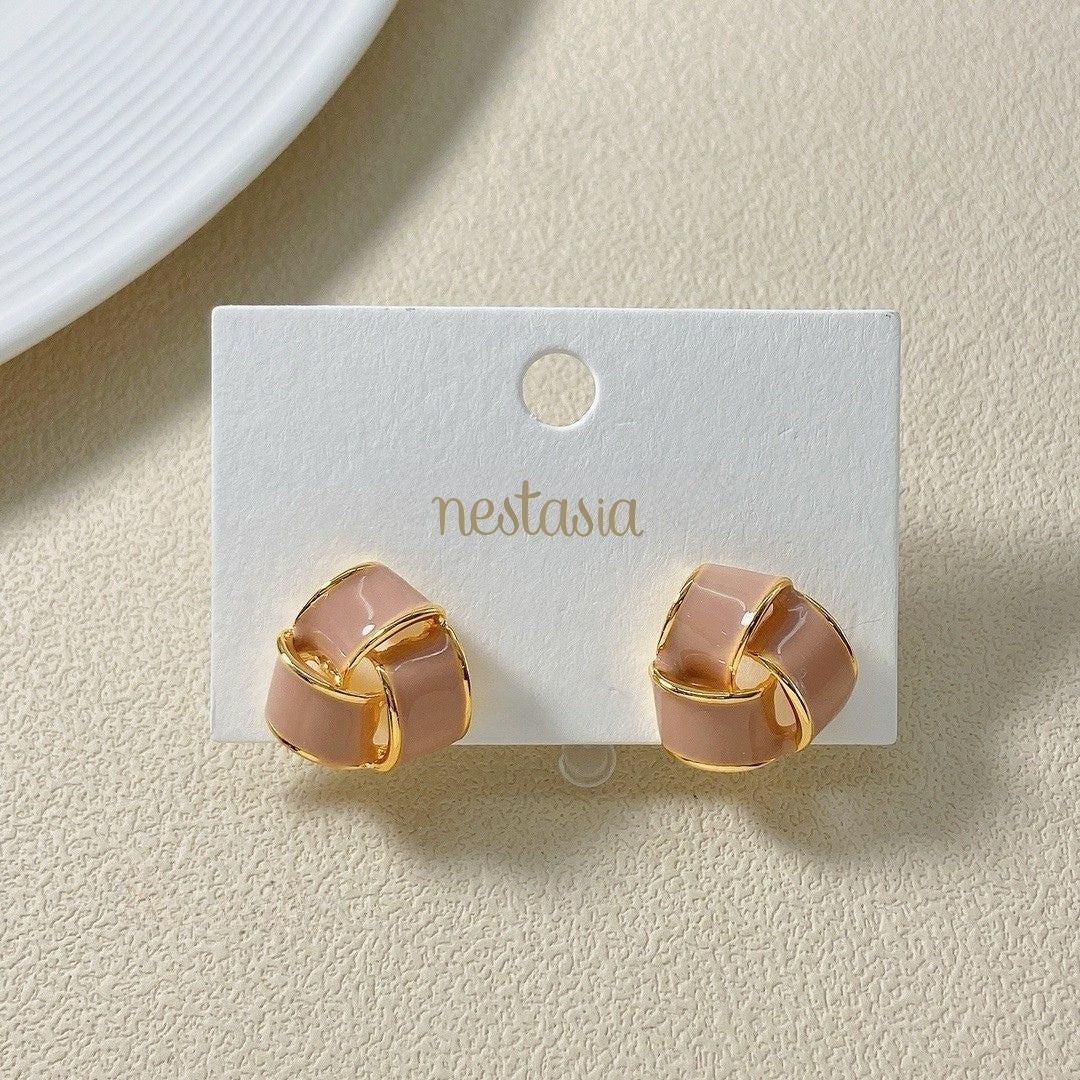 Knotted Style Stud Earrings Mauve