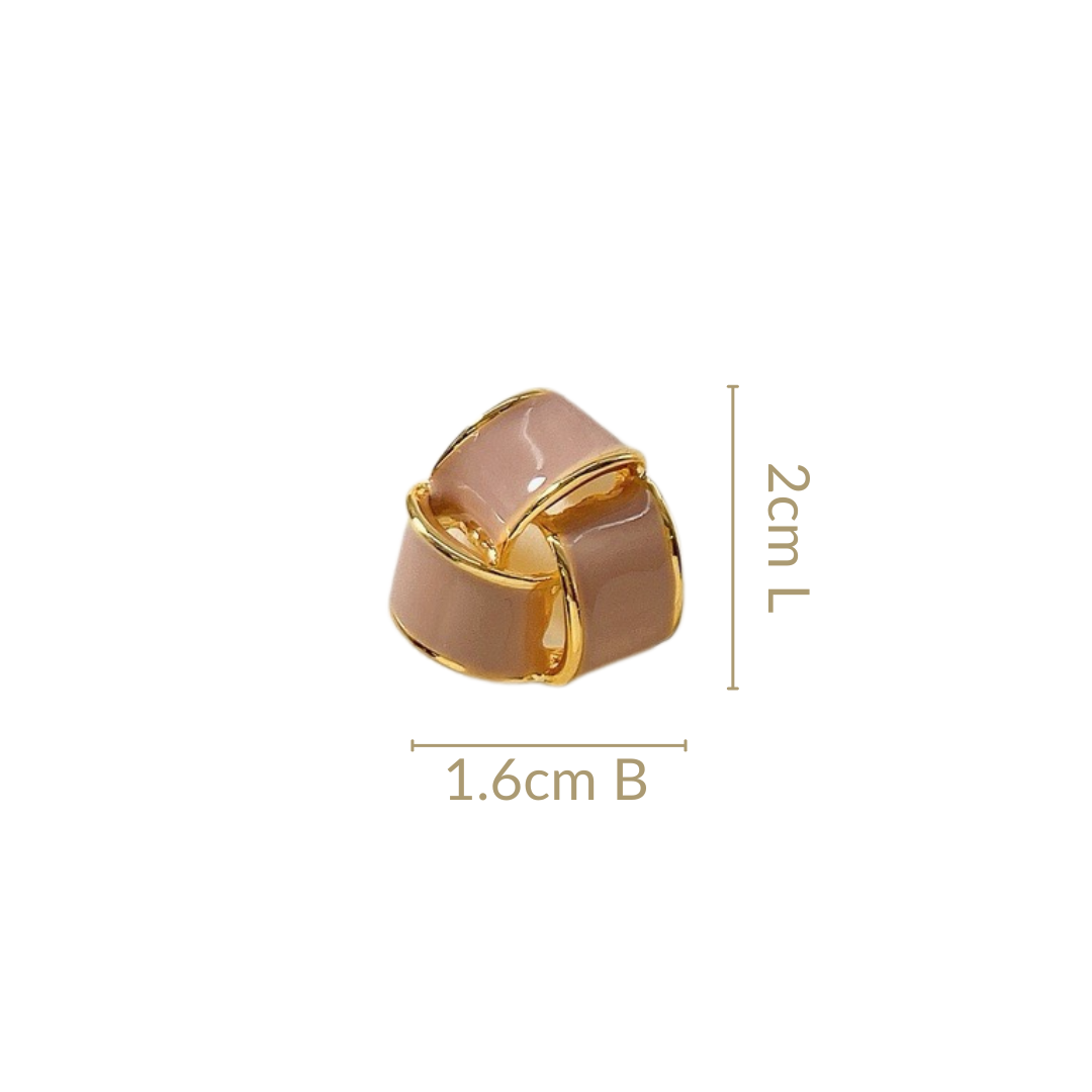 Sophisticatedly chic and deeply rooted in tradition, these stud earrings bring a sense of timeless beauty to your jewellery collection. Drawing inspiration from the Celtic knot, which represents eternal cycles and the strength of connections, these earrings carry a rich history. Set in a striking triangular shape with a gold frame, the soft mauve hue adds a delicate contrast, making them a perfect balance of modern and classic design. A chic accessory that effortlessly elevates any look with its graceful and symbolic touch.