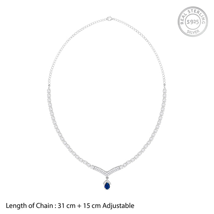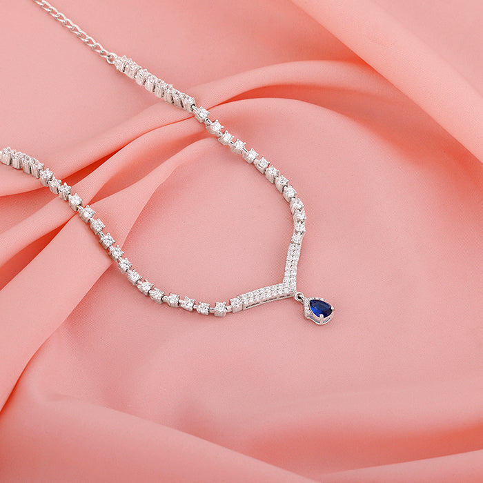This gorgeous necklace has zircons studded in the chain, with a blue-coloured stone attached at the centre. Presenting Trendy Freak's chic #VivaahDaSwag Collection for an unforgettable wedding.