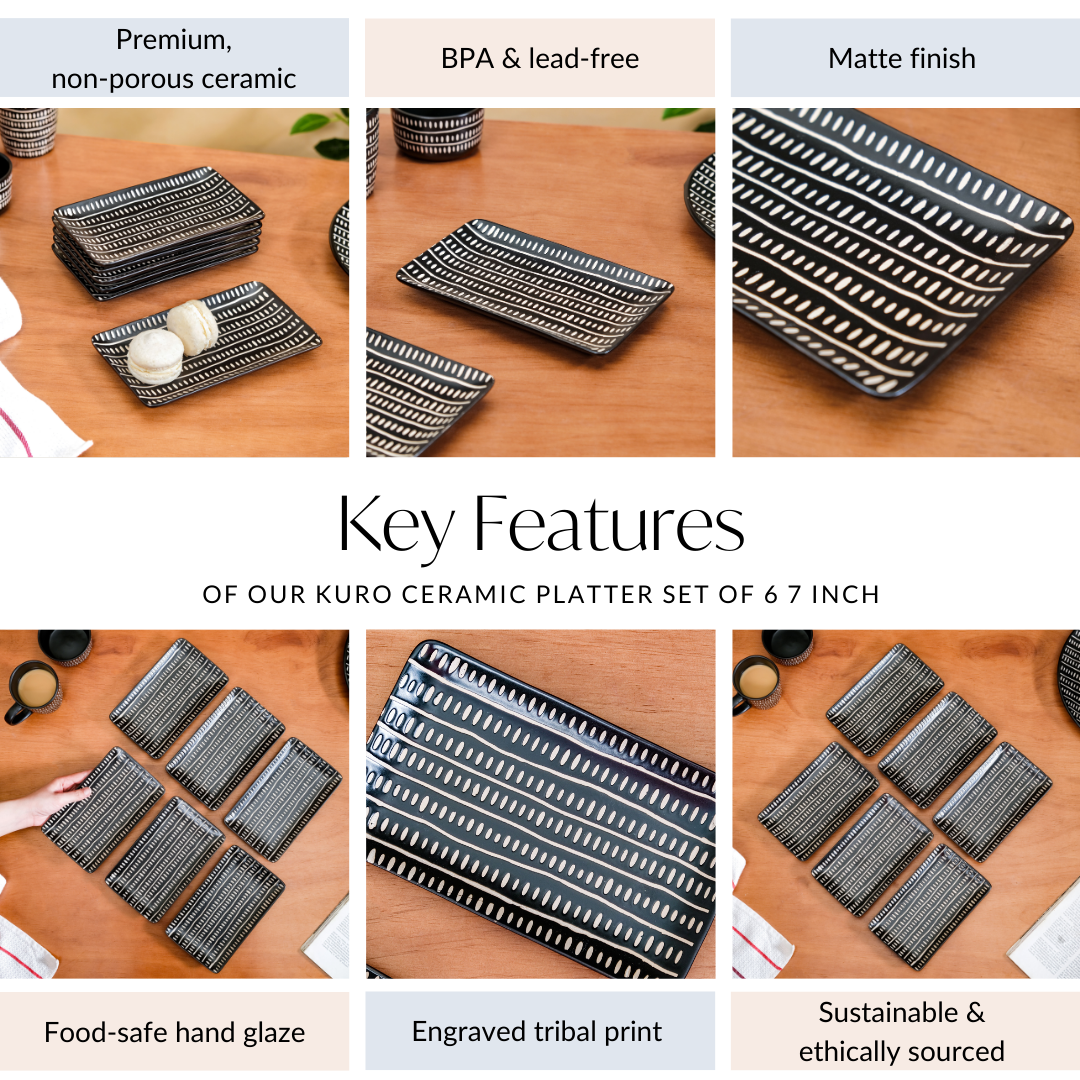 Kuro Ceramic Platter Set Of 6 7 Inch