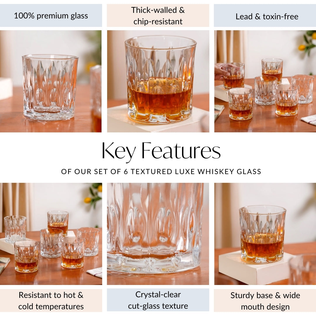 Large Set Of 6 Textured Luxe Whiskey Glass 310ml