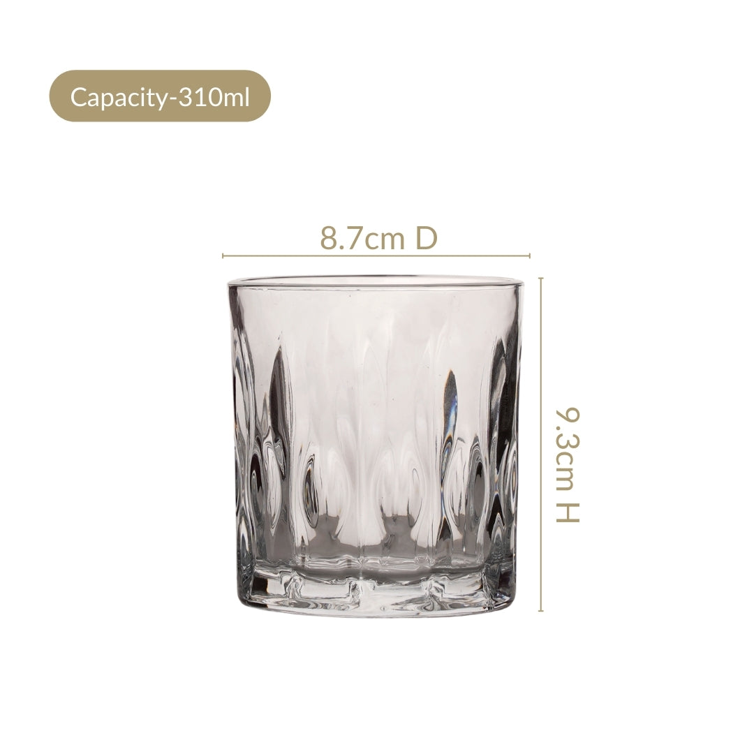 Design: The design of these whiskey glasses is a masterclass in modern elegance. With their embossed glassware pattern, they exude a subtle yet regal feel that’s both chic and minimalistic. The smaller ovals that wrap around each whiskey tumbler glass not only enhance their aesthetic appeal but also offer a comfortable grip, allowing your fingers to nestle into them, making each sip that much more enjoyable.