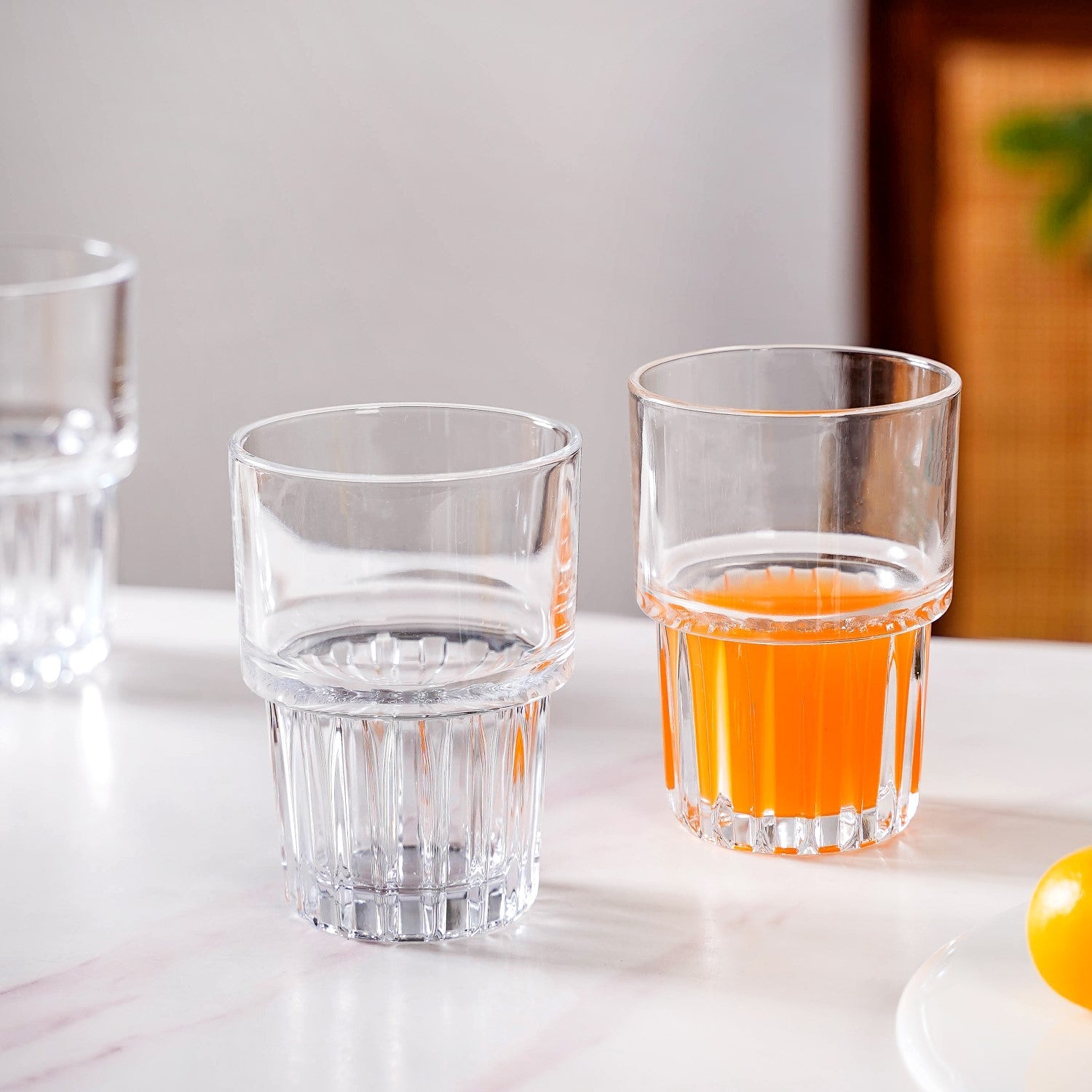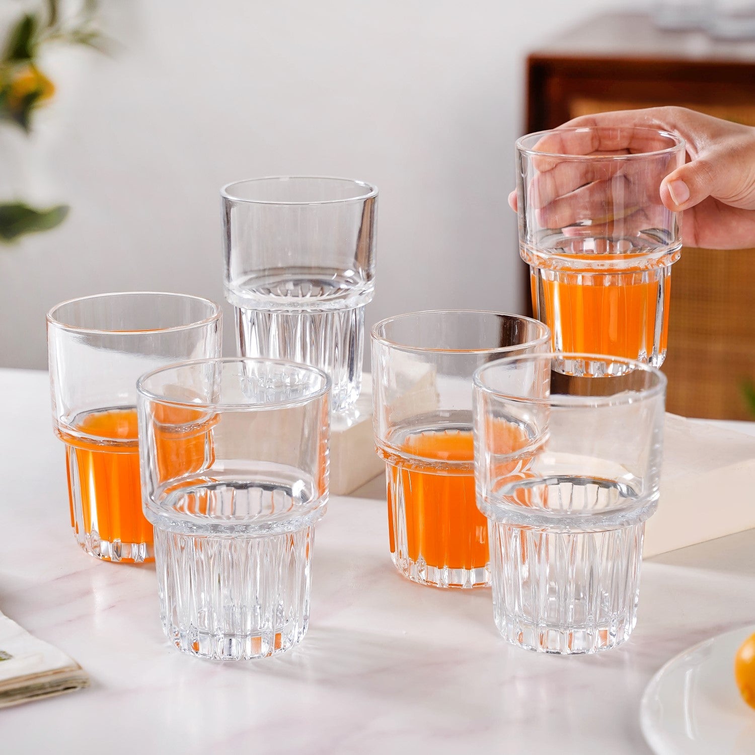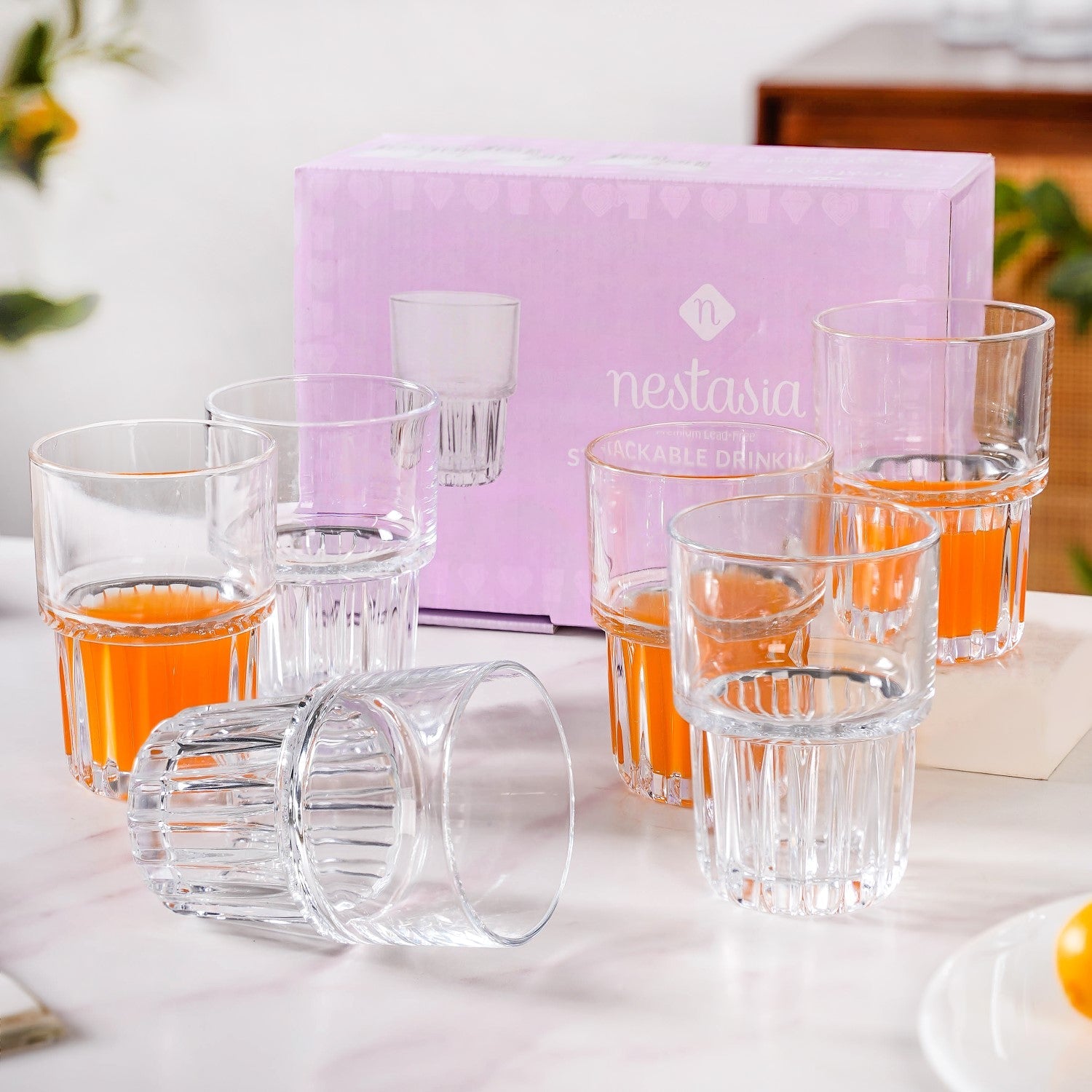 Benefits: Raise the bar on everyday glassware with a blend of durability and design! These stackable glasses are crafted from sturdy, tough glass that’s chip-resistant, lead and cadmium-free, and FDA-approved for safe, worry-free use. Their stain-free and odour-free quality keeps them looking pristine, while the ergonomic grip ensures a comfortable hold with every sip. Designed to save space without compromising style, these glasses deliver lasting clarity and everyday resilience—because great drinkware should be as effortless as it is elegant!