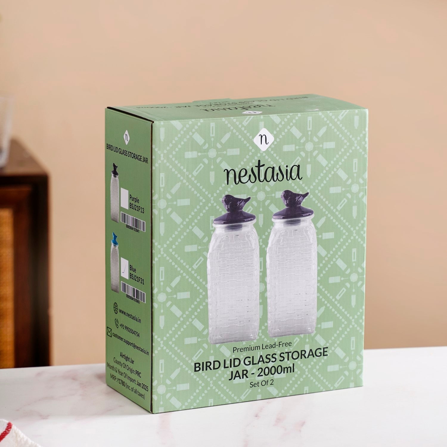 Lattice Glass Storage Container With Blue Bird Lid Set Of 2 2000ml