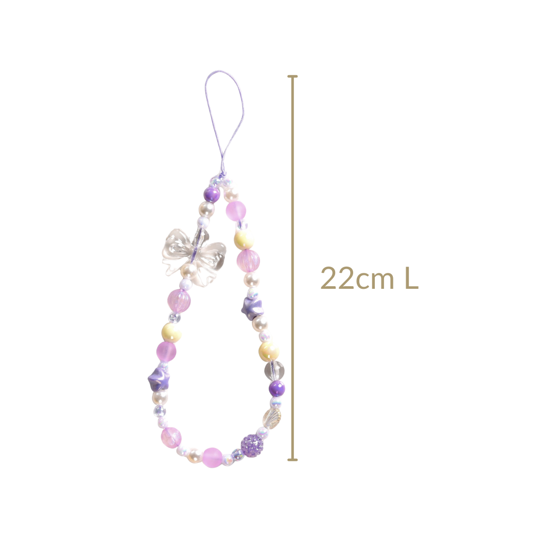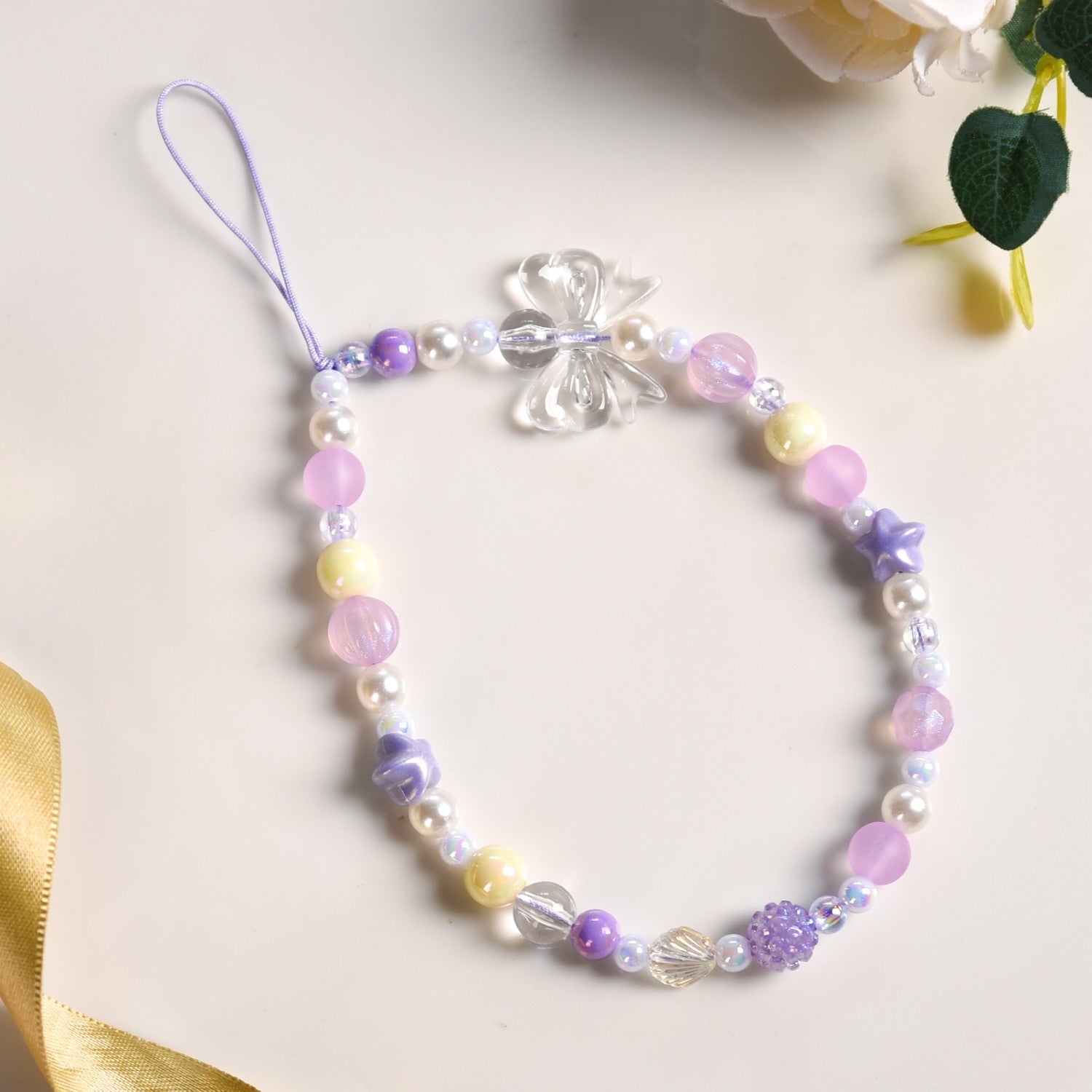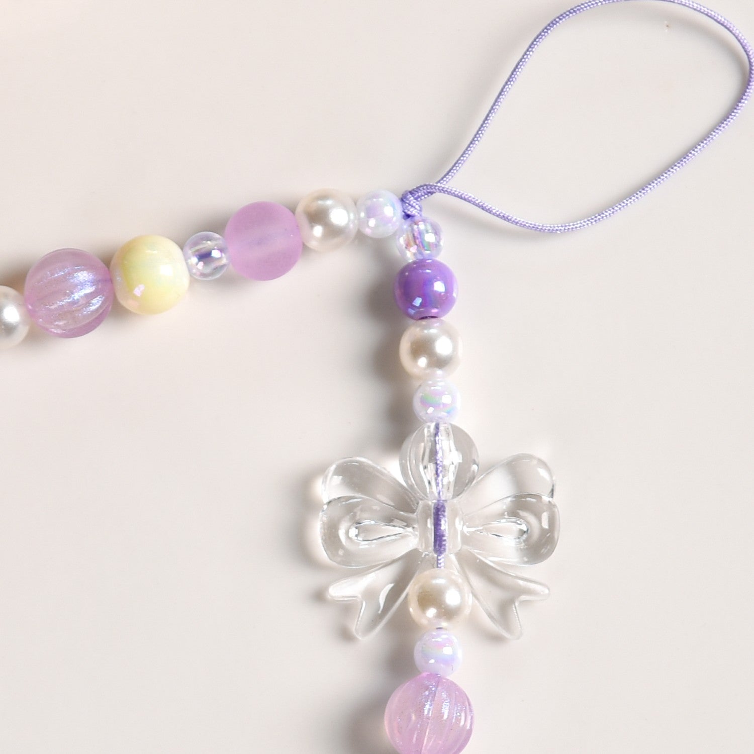 Say hello to your phone's cutest new bestie! This phone lanyard is a sparkly dream, with shiny iridescent beads in purple, lavender, off-white, and clear hues that shimmer like sunlight on waves. Adorable seashells, corals, and starfish-shaped beads make it a mini ocean party, and the clear bow charm? Total cherry-on-top vibes!