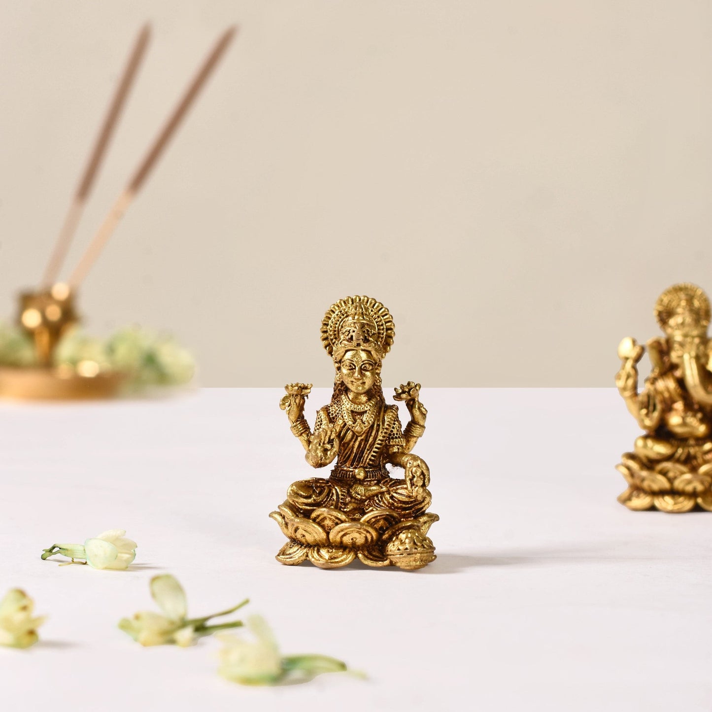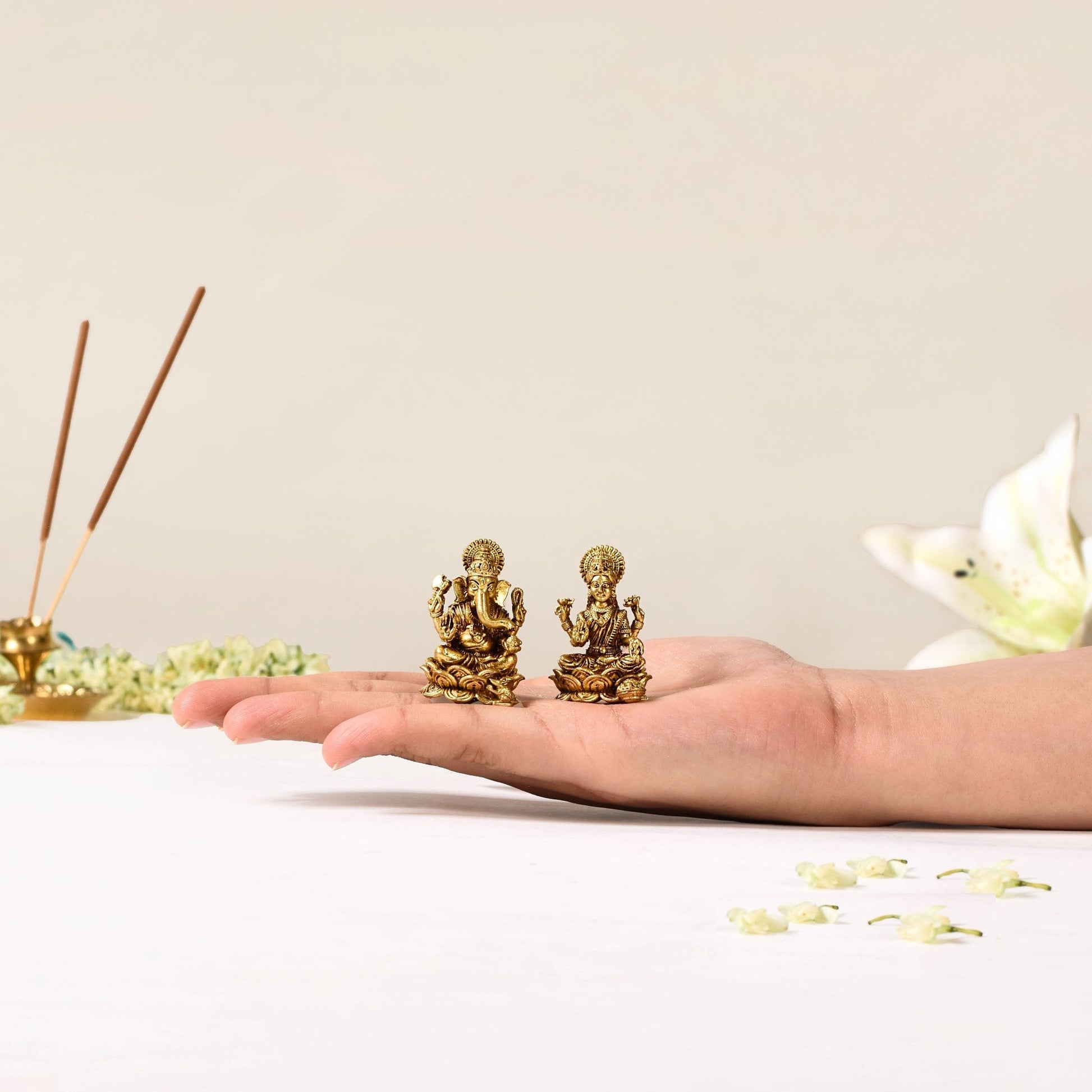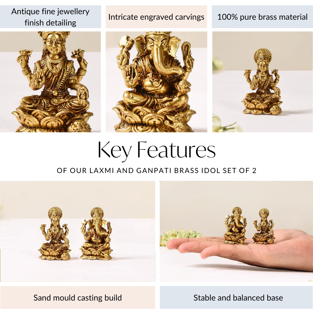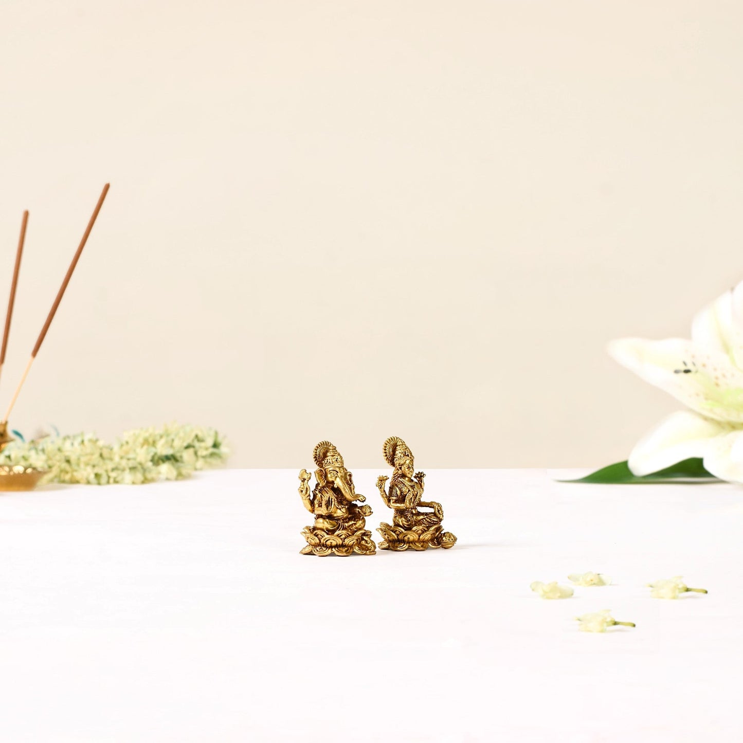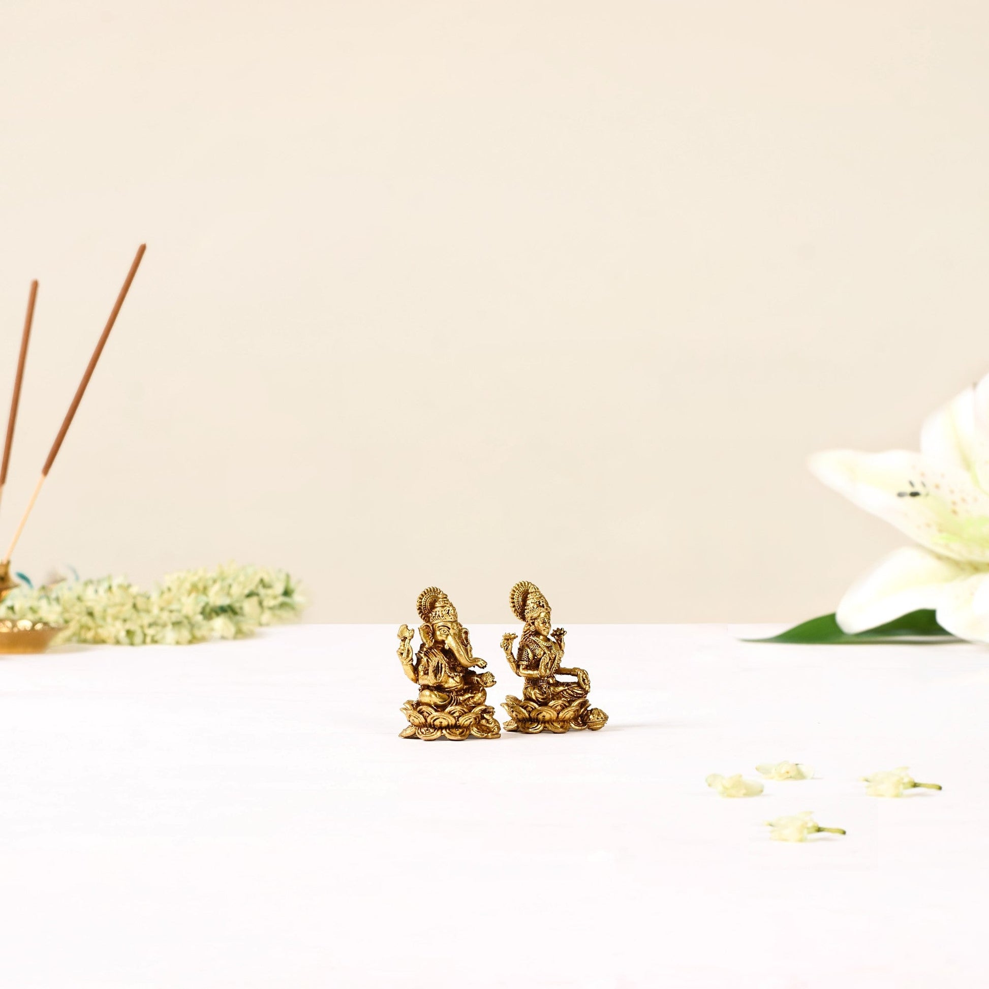 Laxmi And Ganpati Pure Brass Idol Set Of 2 4cm