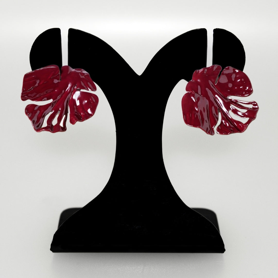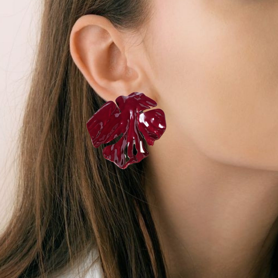 With its rich maroon hue and intricate dented design, this earring captures the essence of an abstract leaf. The delicate pattern creates a textured, nature-inspired look that’s both contemporary and chic, adding a touch of sophistication and originality to any attire.