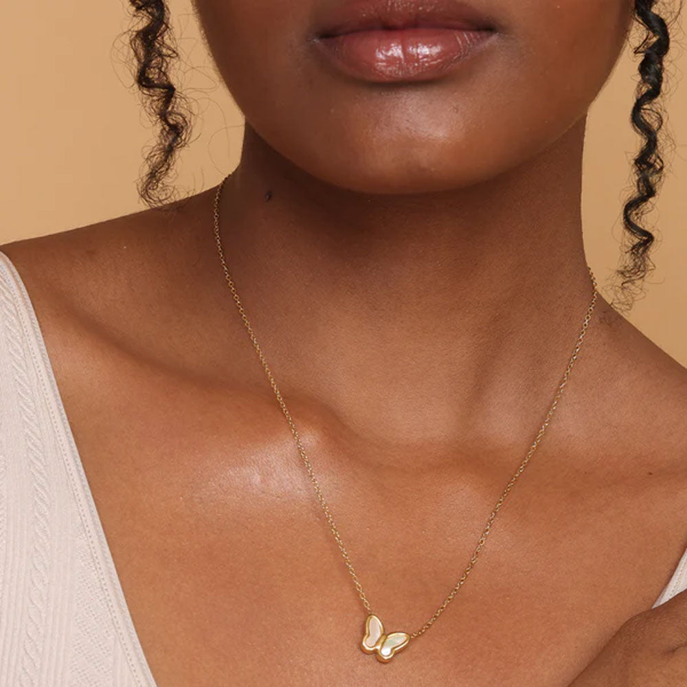 Little Butterfly Necklace & Flat Wire Bangle Bracelet Combo Set