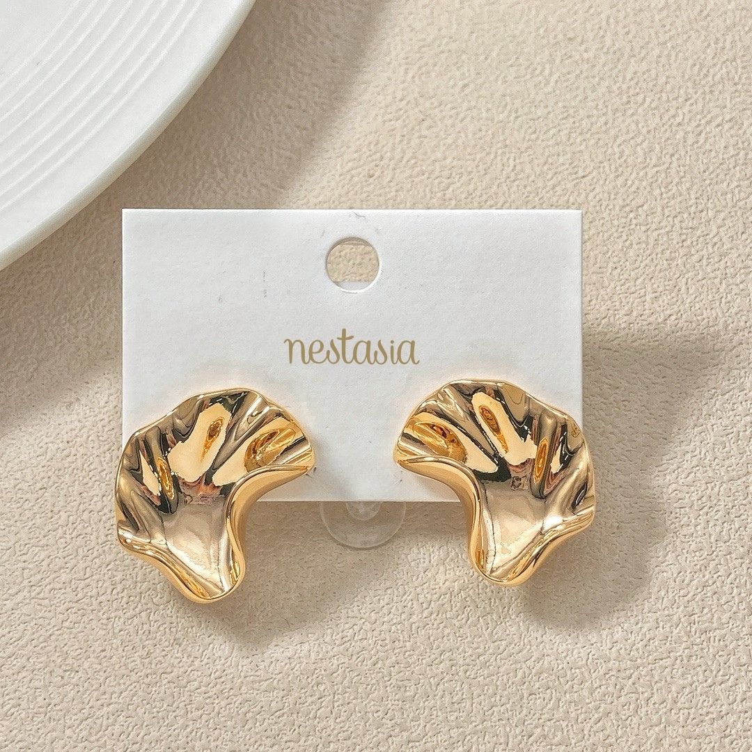 These exquisite stud earrings capture the essence of nature’s elegance with a delicate nod to the ginkgo leaf. Inspired by the timeless symbol of resilience and harmony, the design transforms the leaf’s graceful shape into an abstract and fluid form, exuding a sense of organic beauty. Crafted in a rich gold hue, the earrings blend contemporary sophistication with the natural world, making them a refined addition to any jewelry collection. A perfect balance of nature and artistry, they bring a touch of quiet elegance to every occasion.