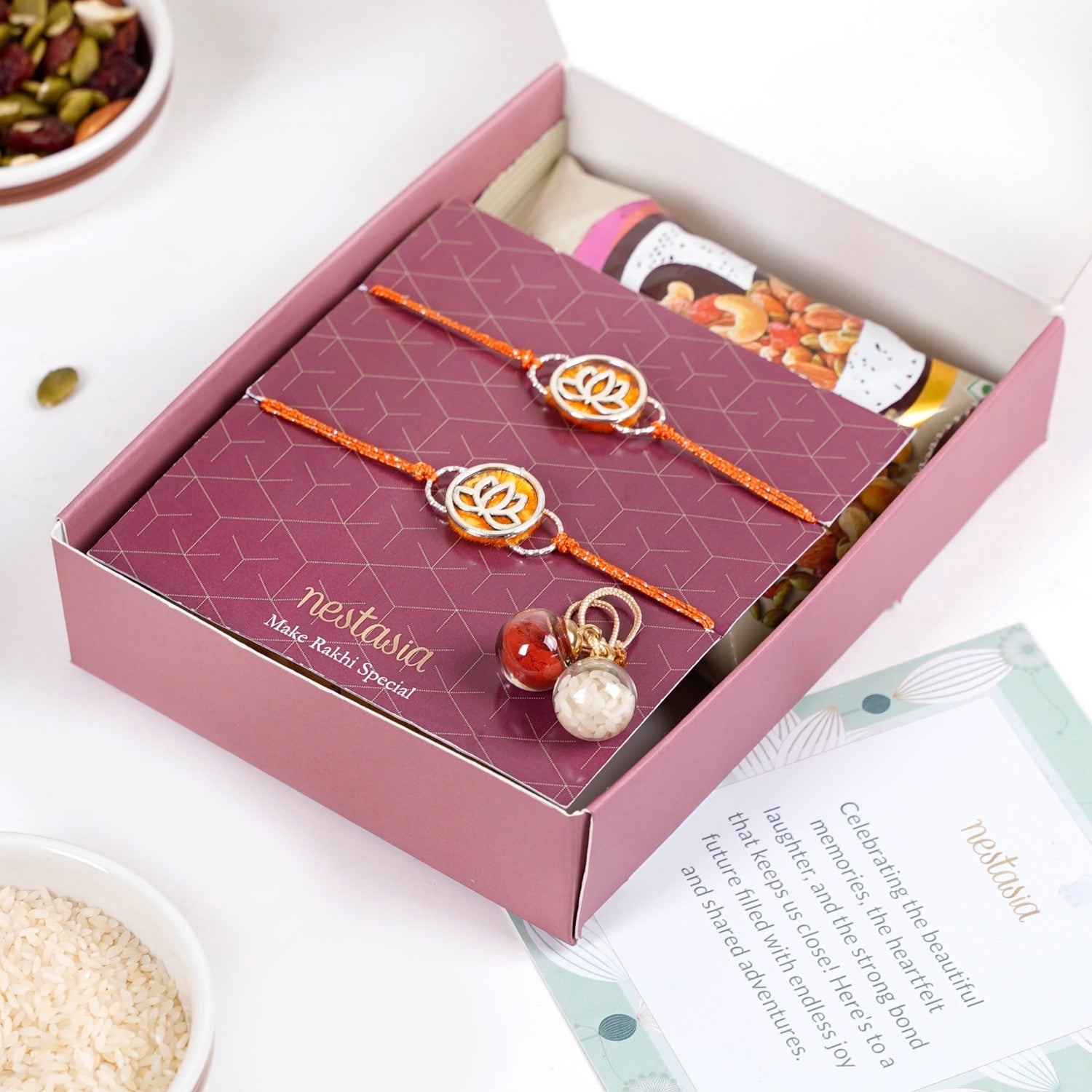 Lotus Rakhi Gift Set Of 4 With Box And Card