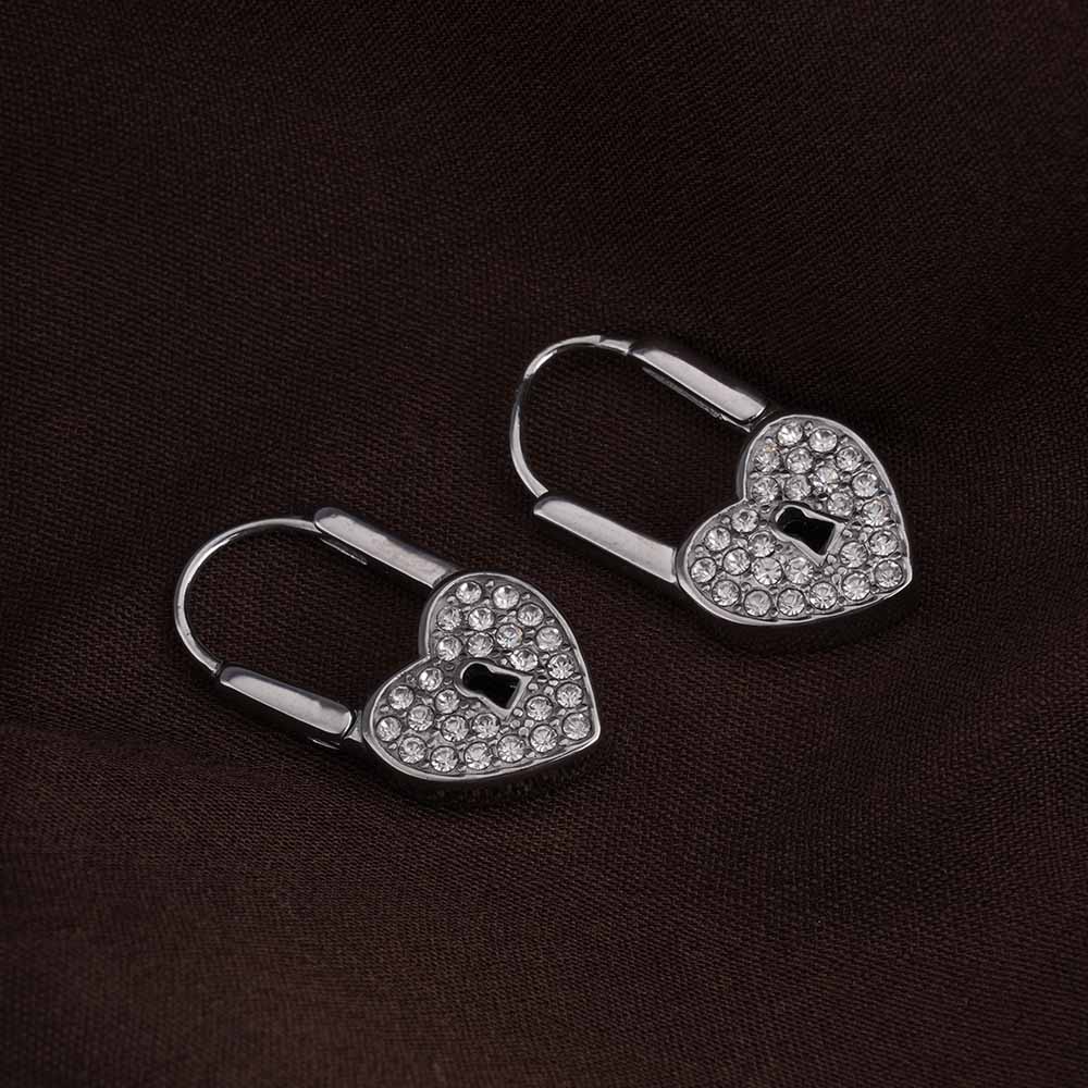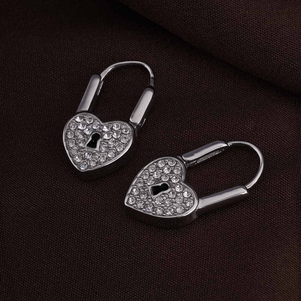 Add a hint of romance to your jewellery collection with these silver-plated Love Lock hoop earrings. Adorned with sparkling cubic zirconia, they exude sophistication while keeping a playful charm. The rhodium finish enhances durability and shine, making them perfect for daily wear or special outings. Designed with a waterproof and anti-tarnish coating, these hoops are a lasting symbol of elegance and style.