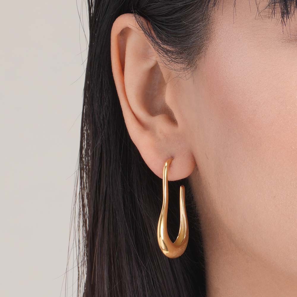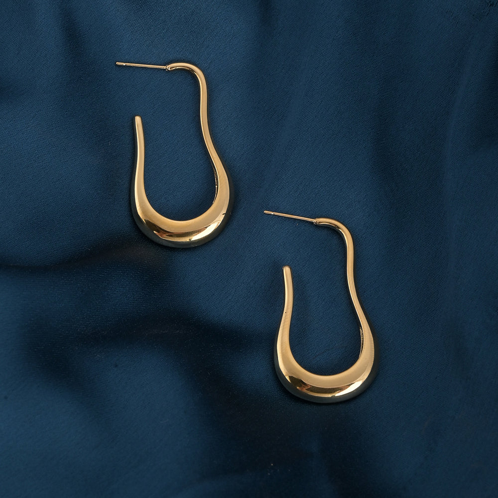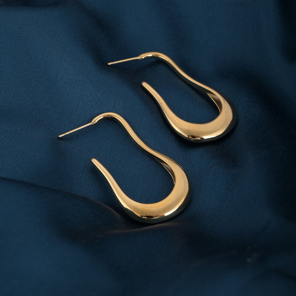 The Lunar Curve Dangler Earrings capture celestial elegance with their graceful, curved silhouette. Crafted in stainless steel with a radiant 18k gold or rhodium plating, these waterproof and anti-tarnish earrings flow beautifully with every movement. Perfect for casual, office, or evening wear, their sculptural design adds subtle sophistication and a modern, versatile charm to any outfit.