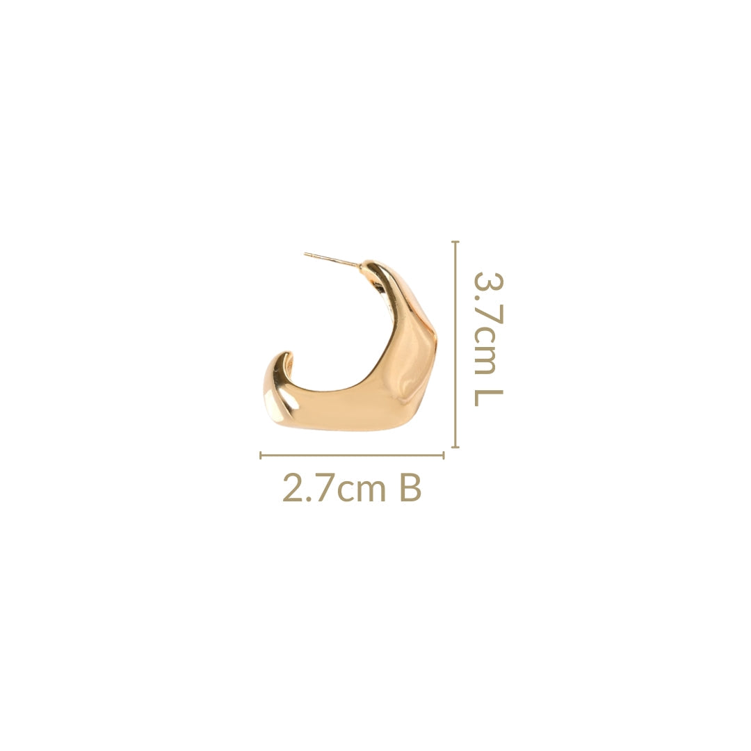 Embrace the celestial allure of these gold-toned metal hoop earrings, where sculptured abstraction takes the shape of a crescent moon. With their elegant curvature and polished finish, these hoops effortlessly combine modern artistry with timeless style. The unique crescent moon shape symbolises new beginnings and transformation, making them a perfect statement piece for any occasion. Inspired by celestial forms and the beauty of the night sky, these earrings bring a touch of cosmic wonder to your accessory collection, offering both a bold and sophisticated look. Perfect for those who appreciate minimalist yet meaningful design.