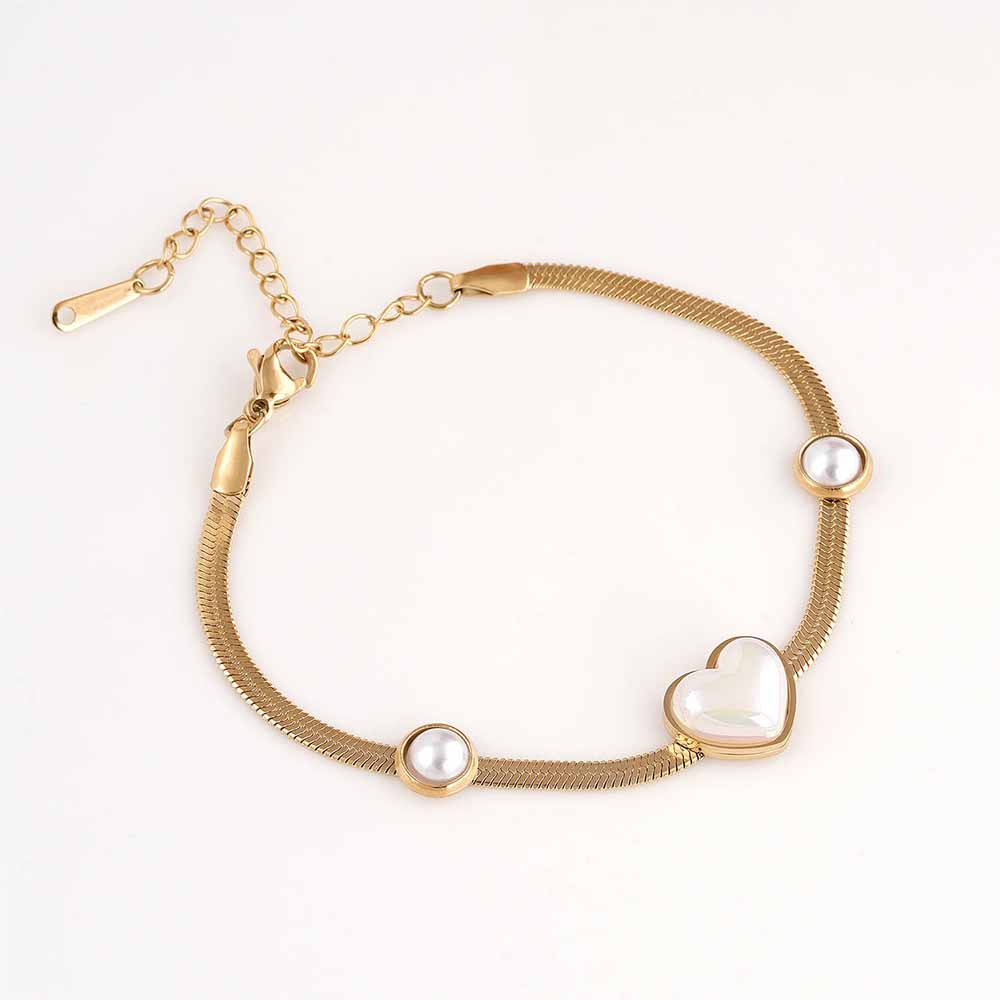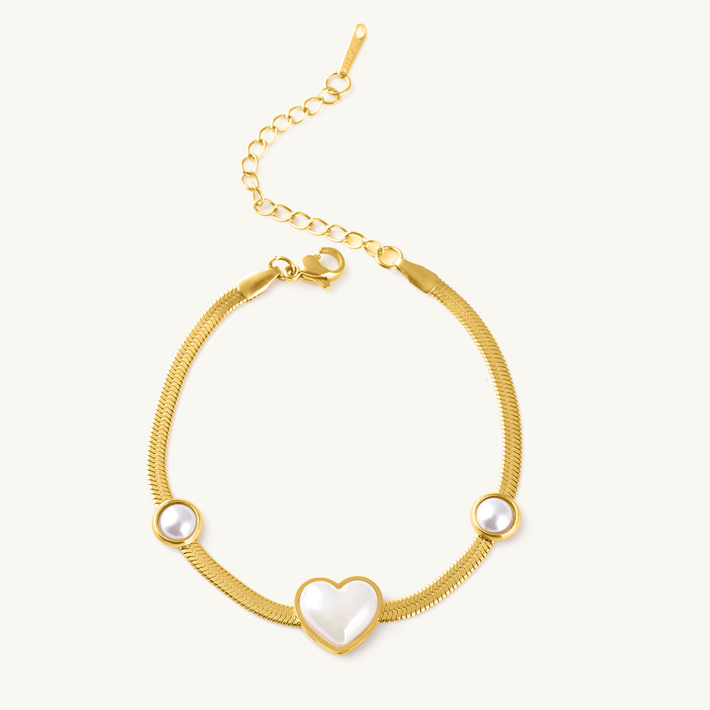 Delicate and enchanting, the Lunar Gems bracelet features a slender 18k gold-tone chain adorned with luminous white pearls. Its refined design brings a touch of elegance to any ensemble, perfect for layering or wearing solo. Whether for casual outings or special occasions, this bracelet adds a subtle shimmer, elevating your look with timeless sophistication and contemporary charm.