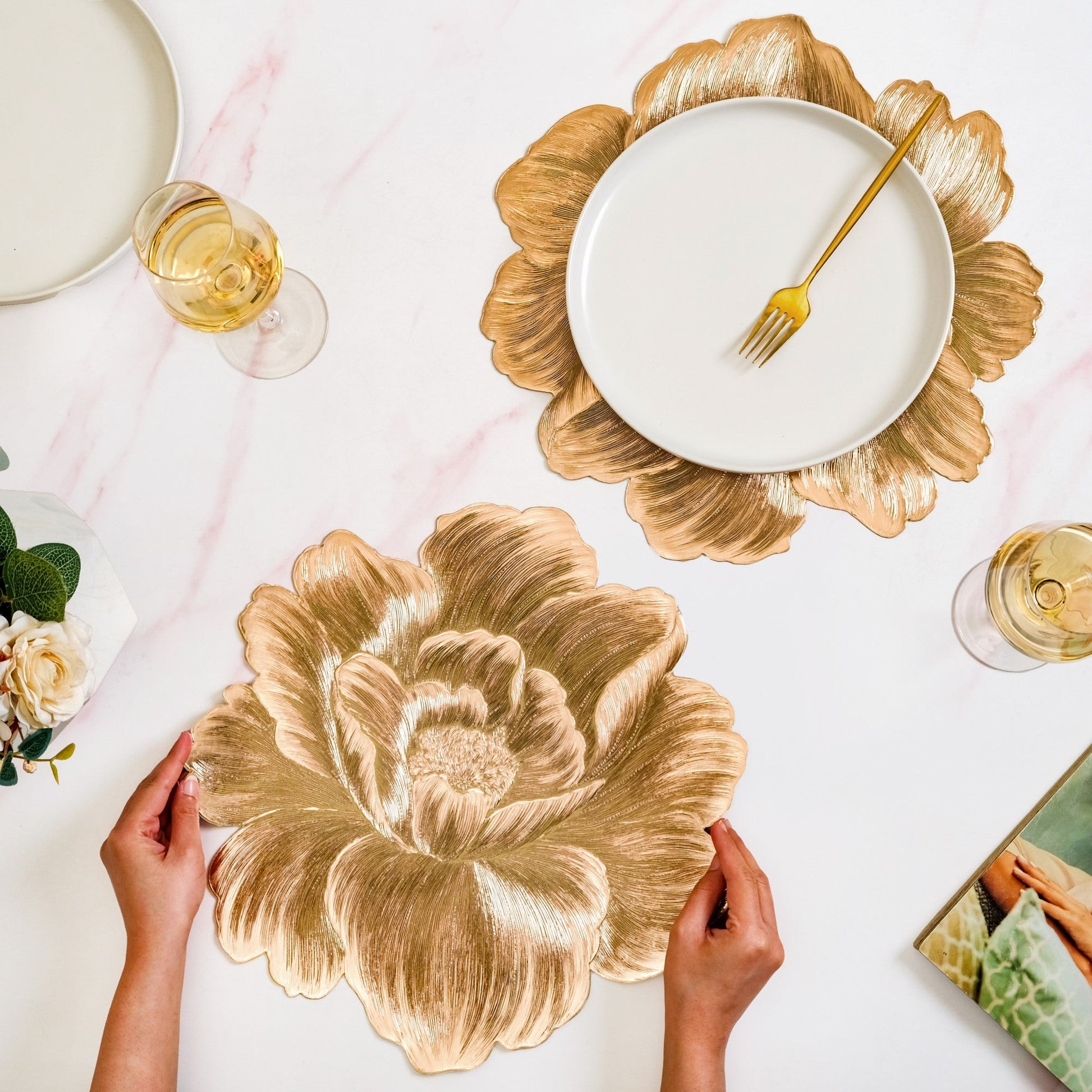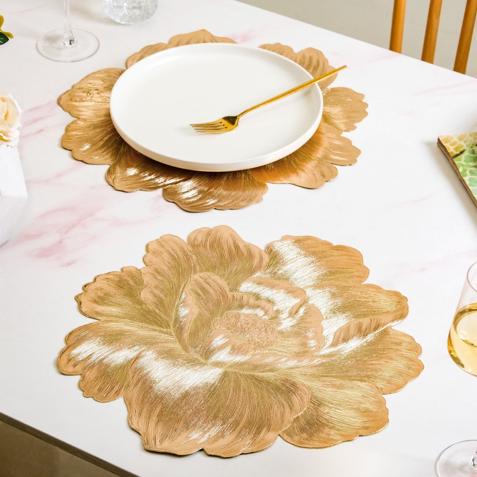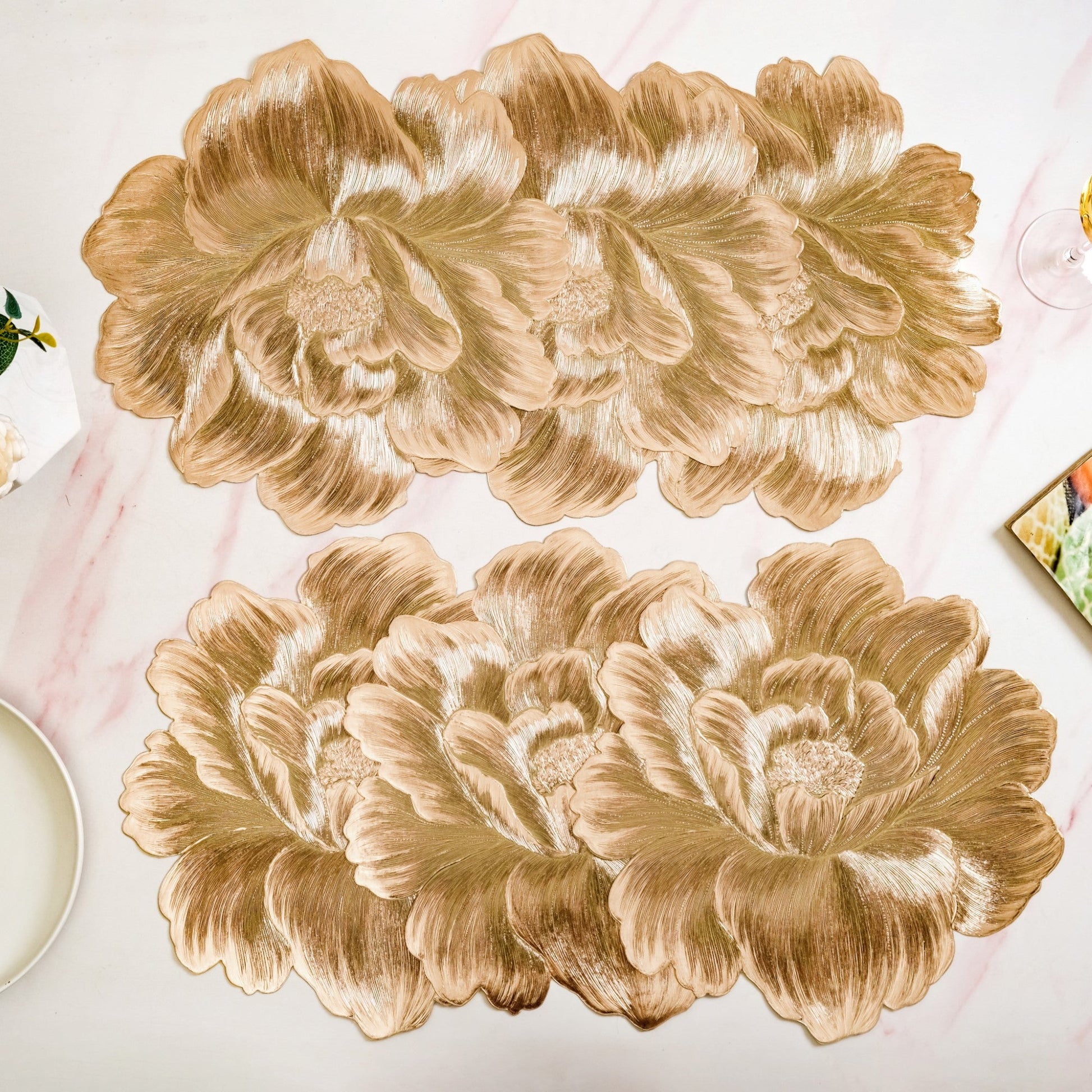 Luxe Peony Bloom Gold Table Mat Set Of 6