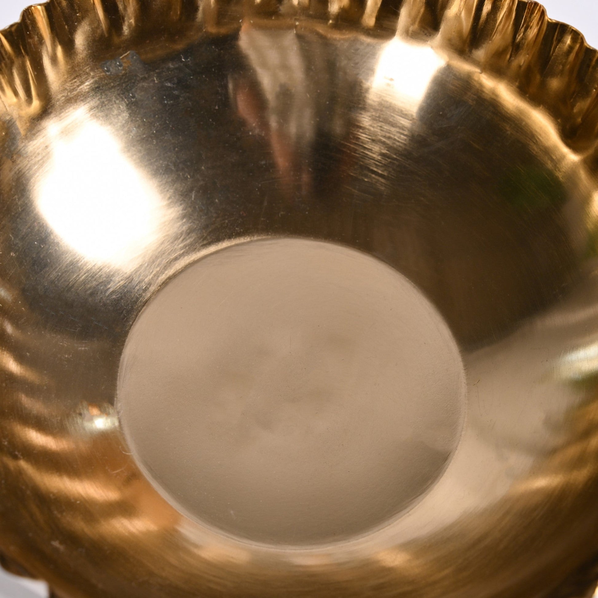 Design: Exquisitely crafted from iron, this decorative bowl showcases a rich gold hue, exuding sophistication and opulence. The wavy, ruffled texture of the rim adds an artistic flair, gently capturing light and drawing attention. Supported by a matte black iron stand, the contrast between the rich gold and subtle black creates a striking visual balance, elevating the decor bowl's design.